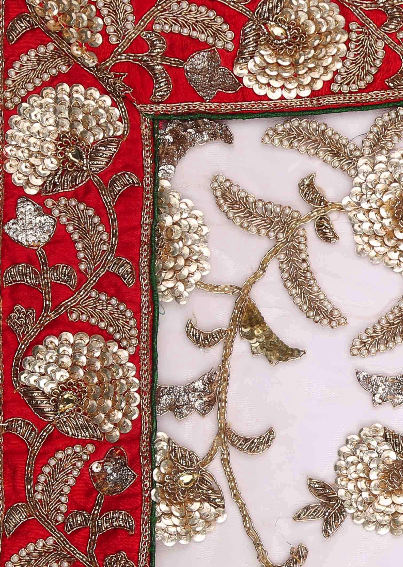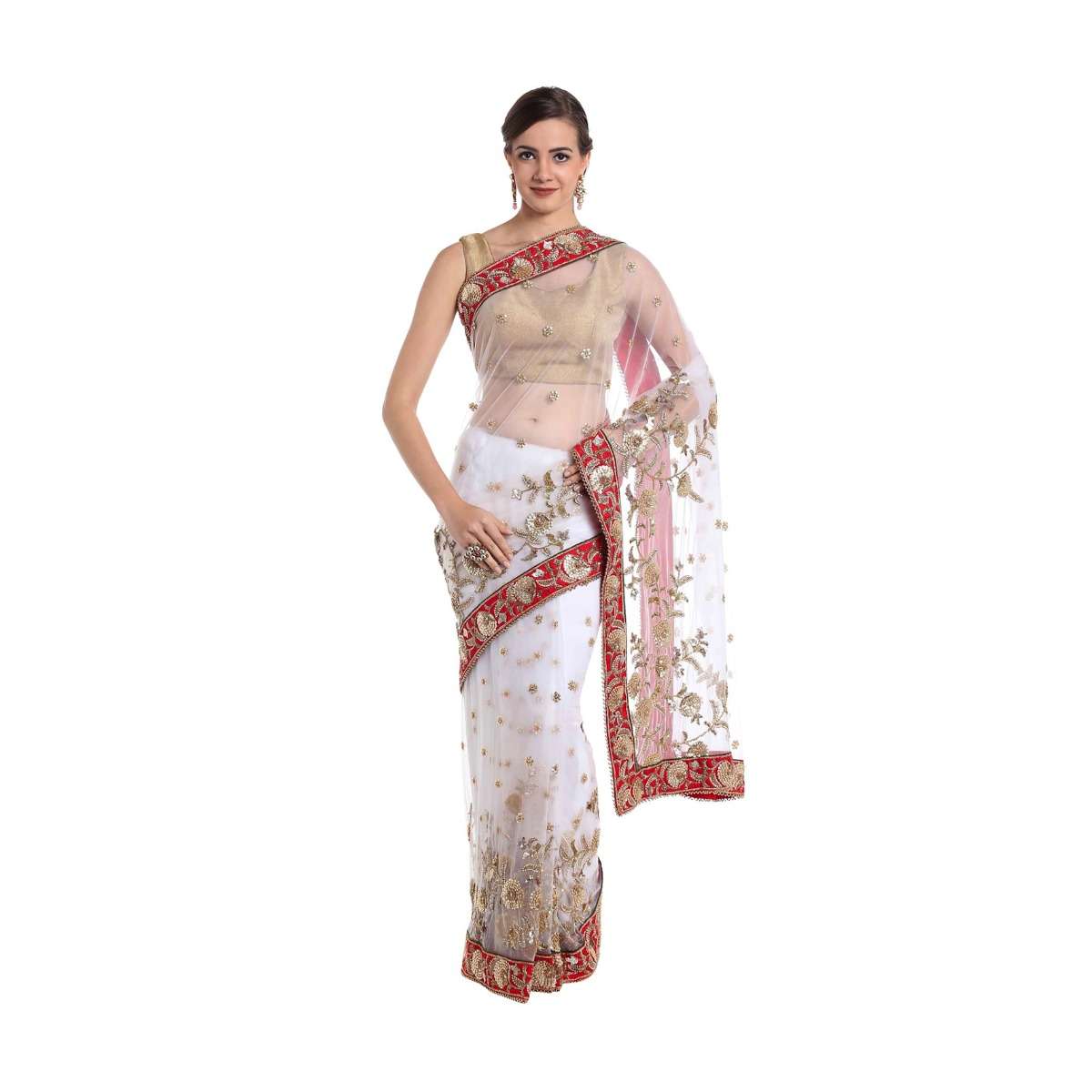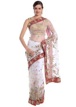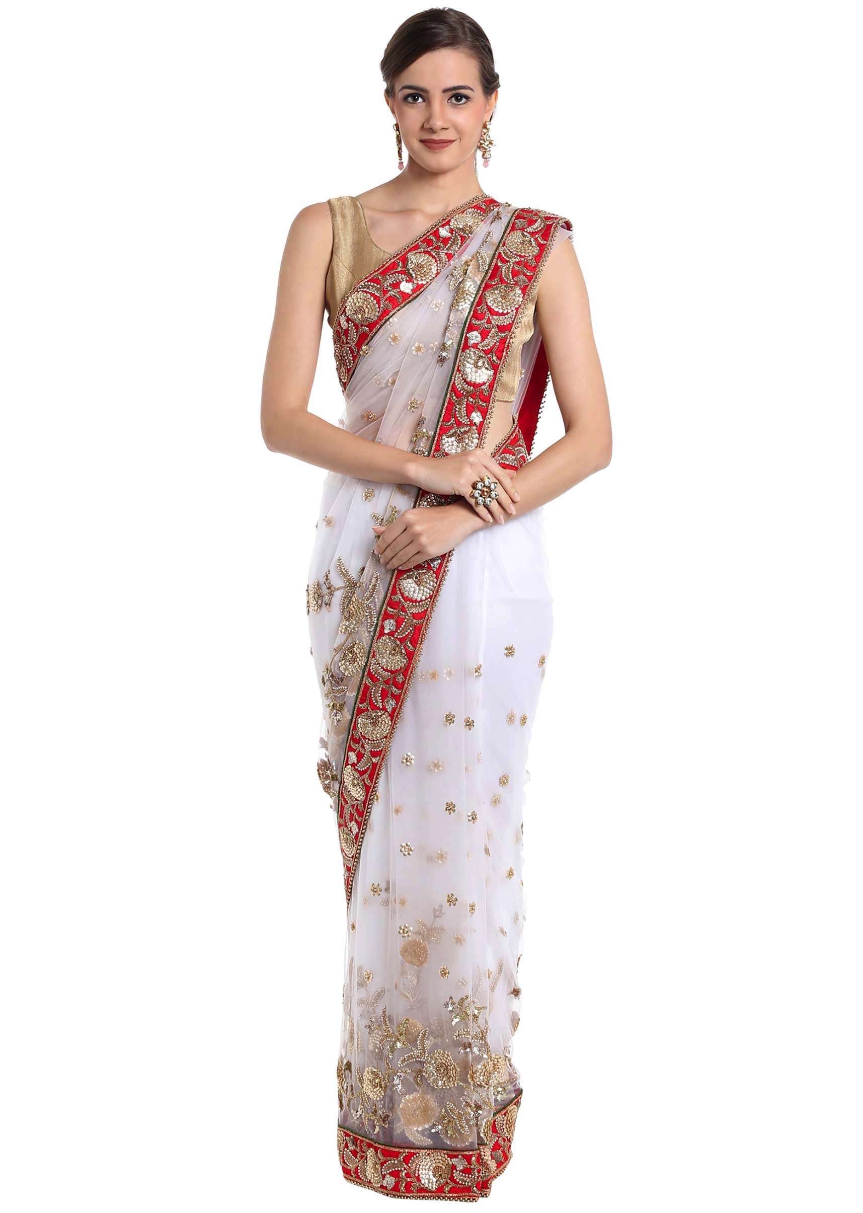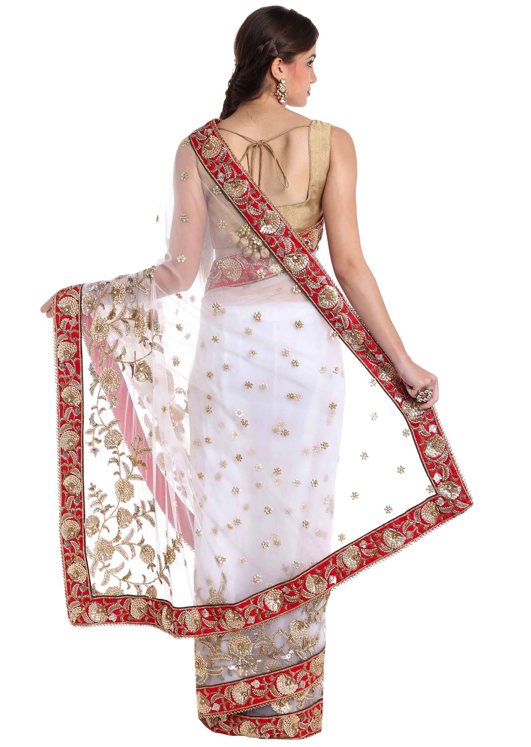 White net saree adorned with sequins and zardosi craft only on Kalki
