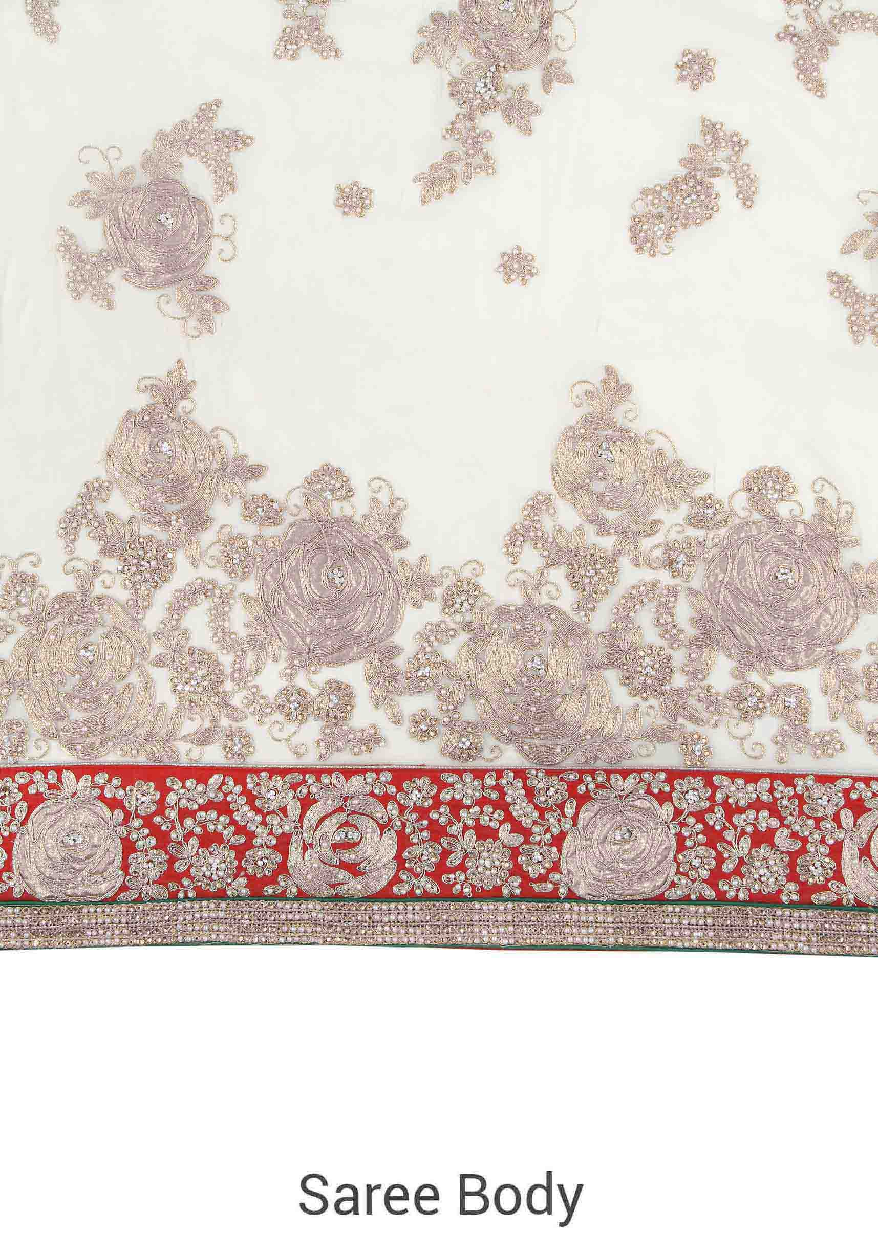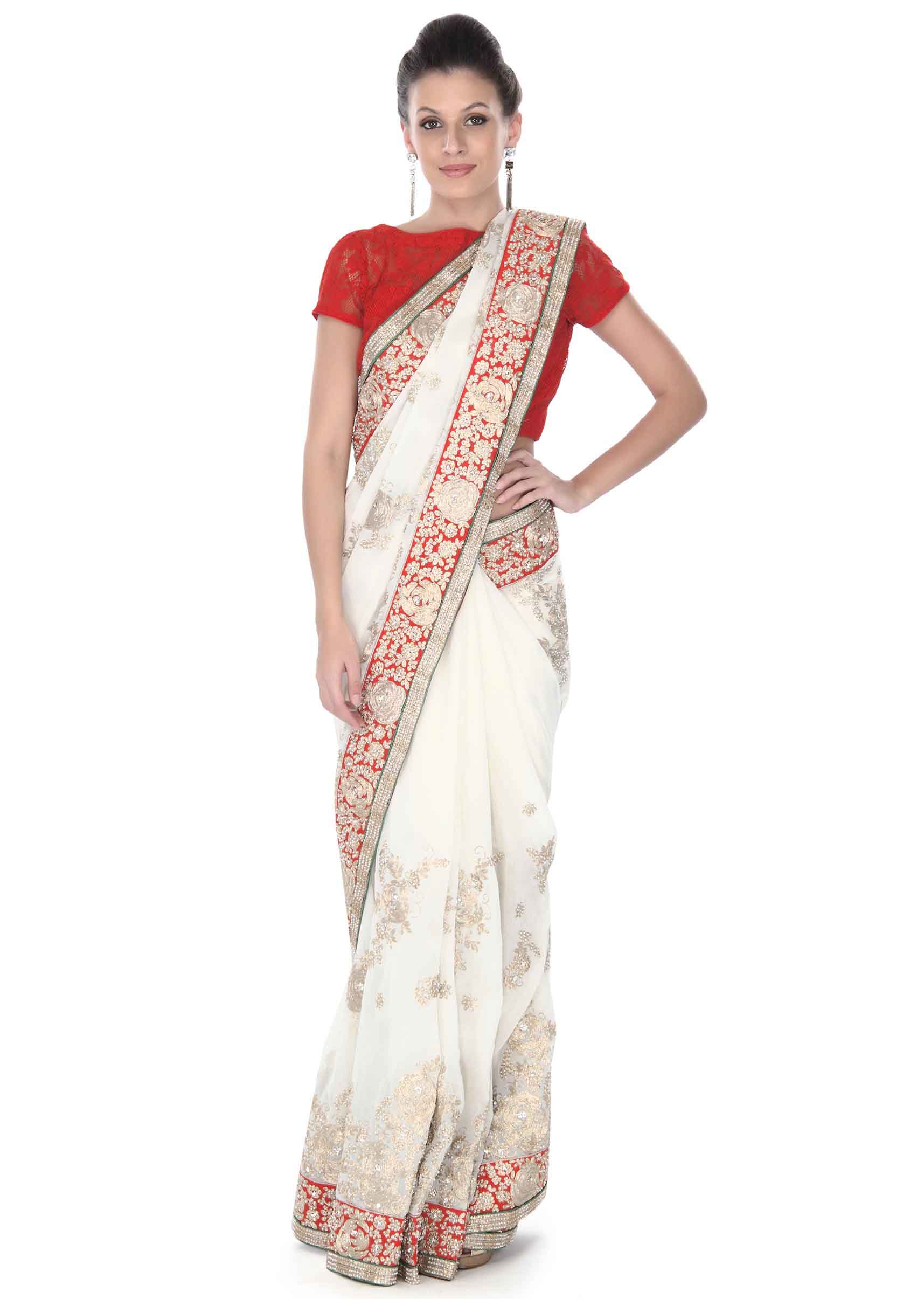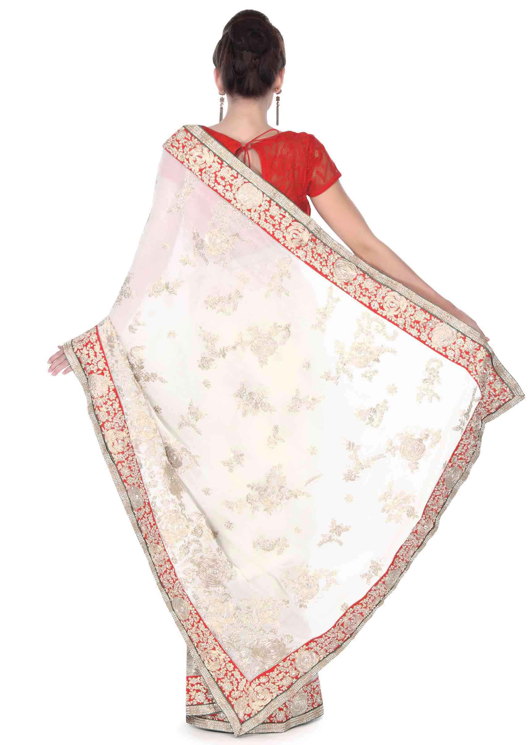 White saree in floral motif embroidery in sequin only on Kalki