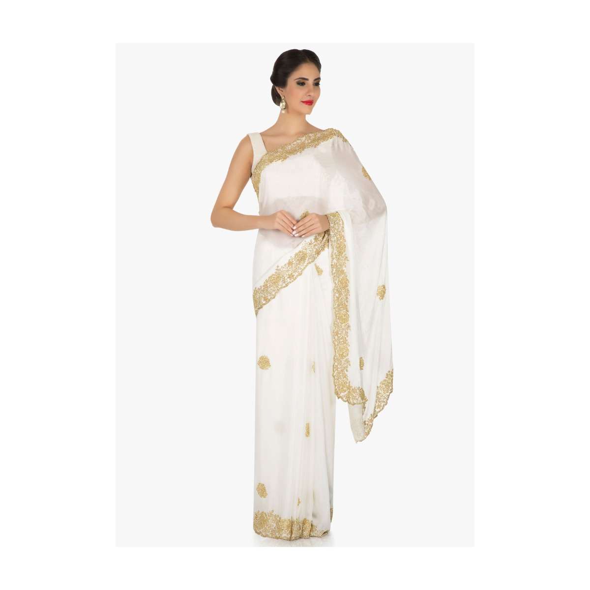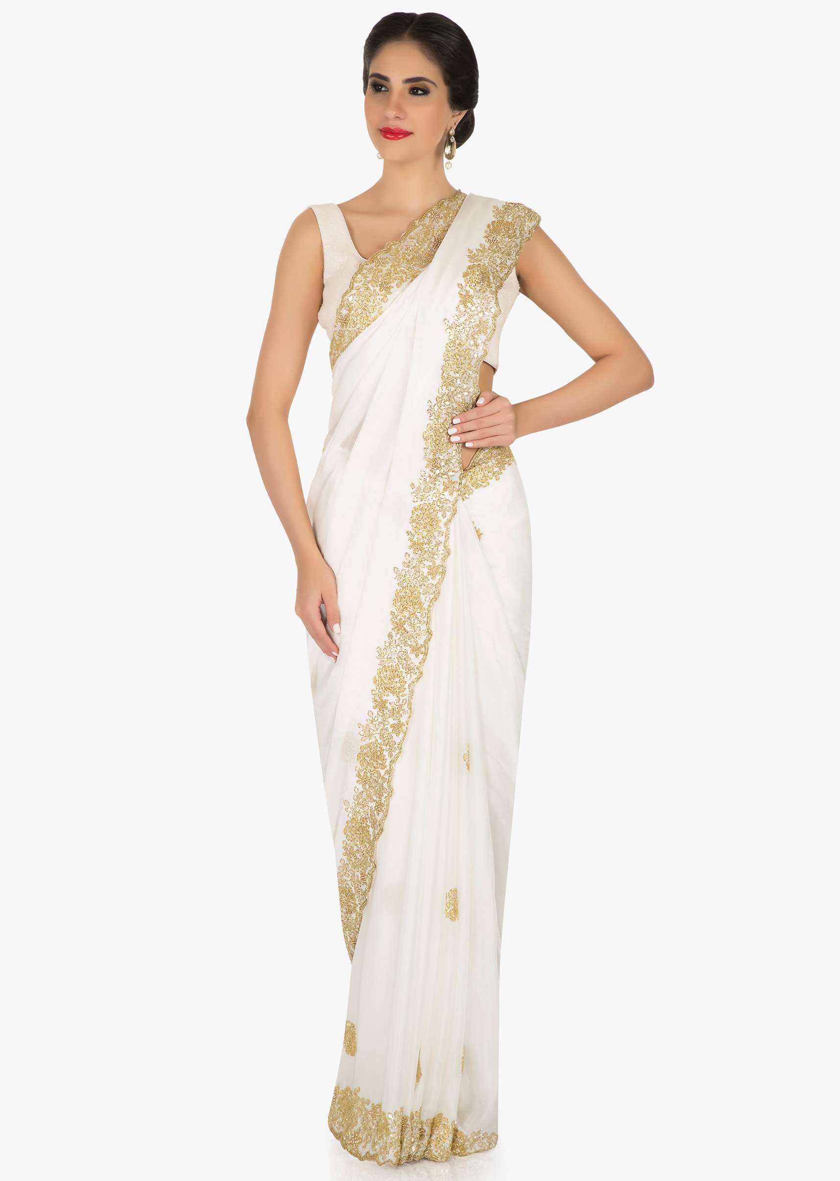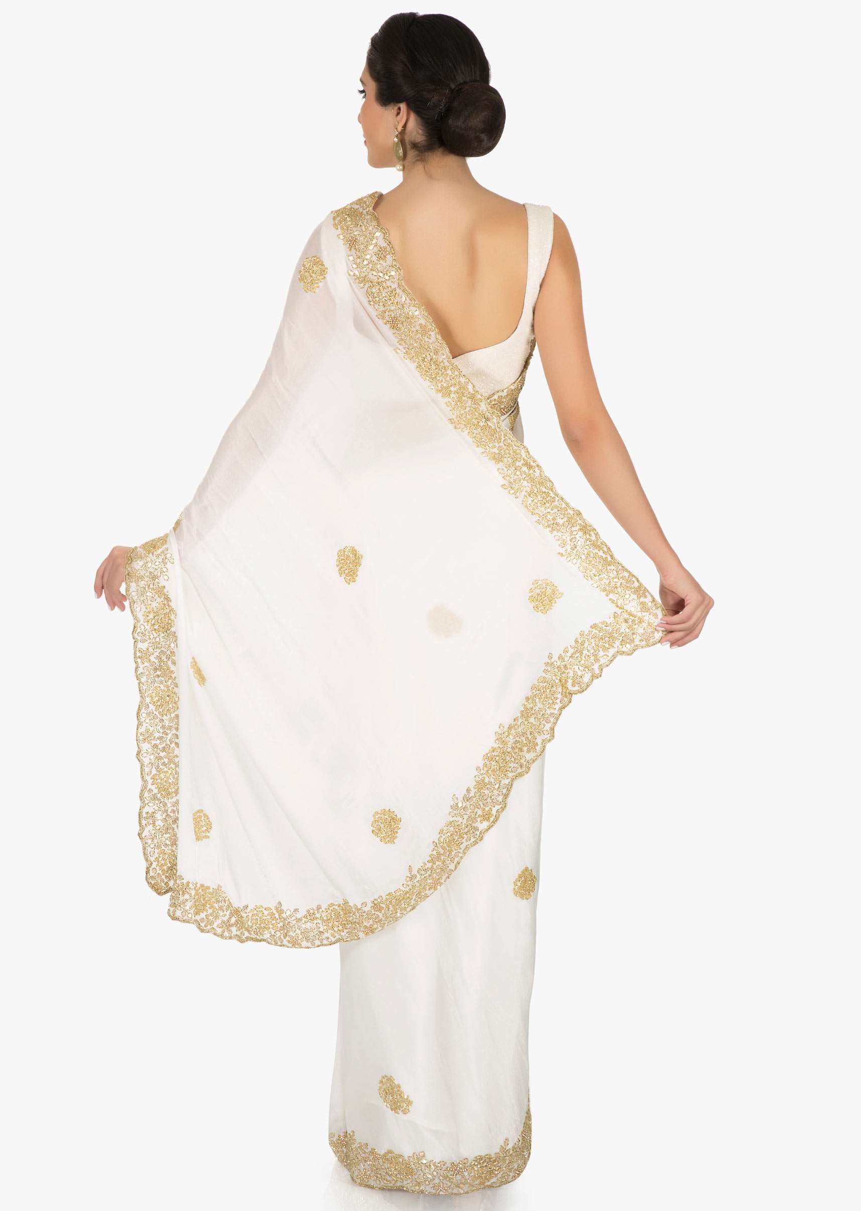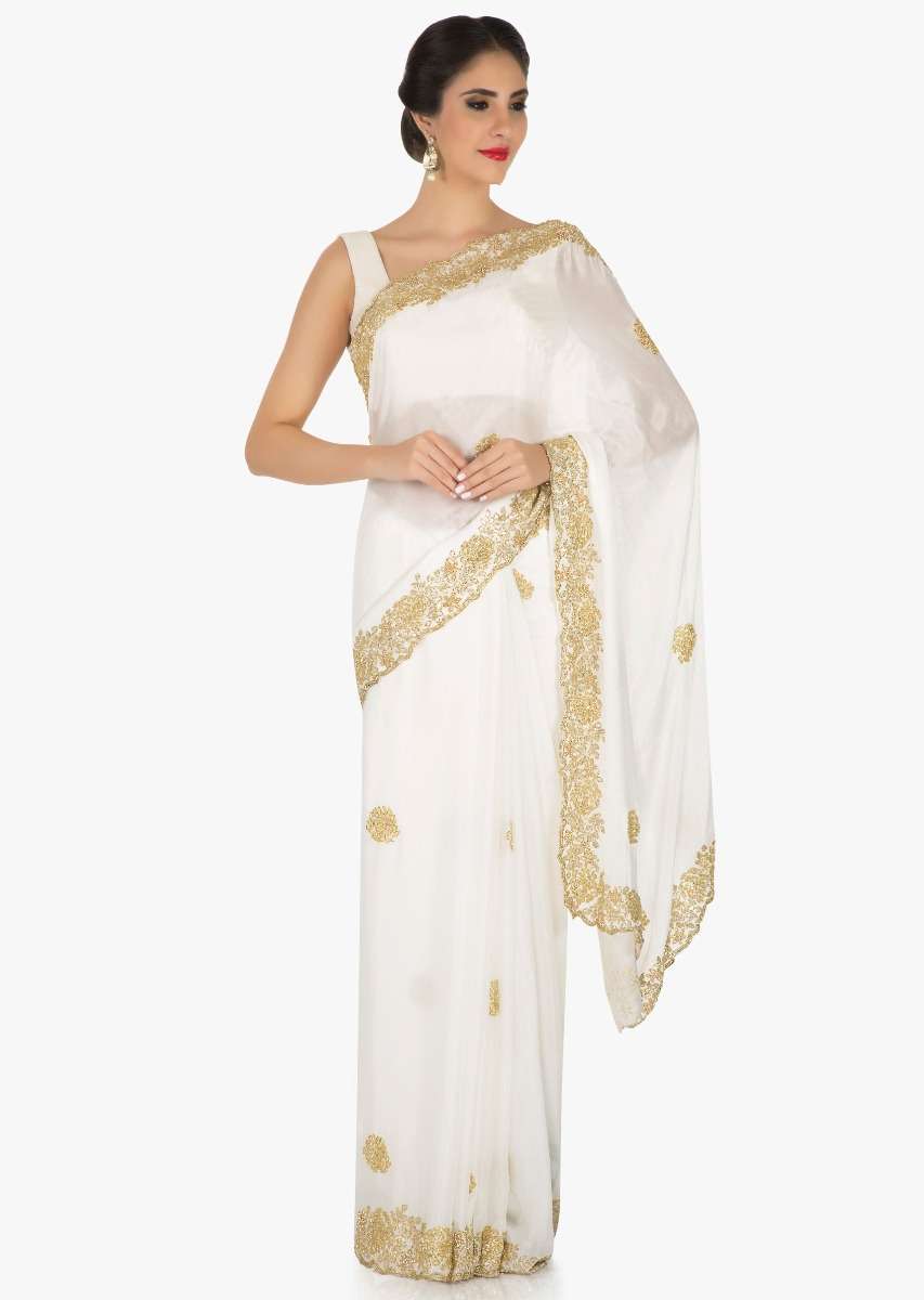 White Saree In Georgette Embellished With Cut Dana Online - Kalki Fashion