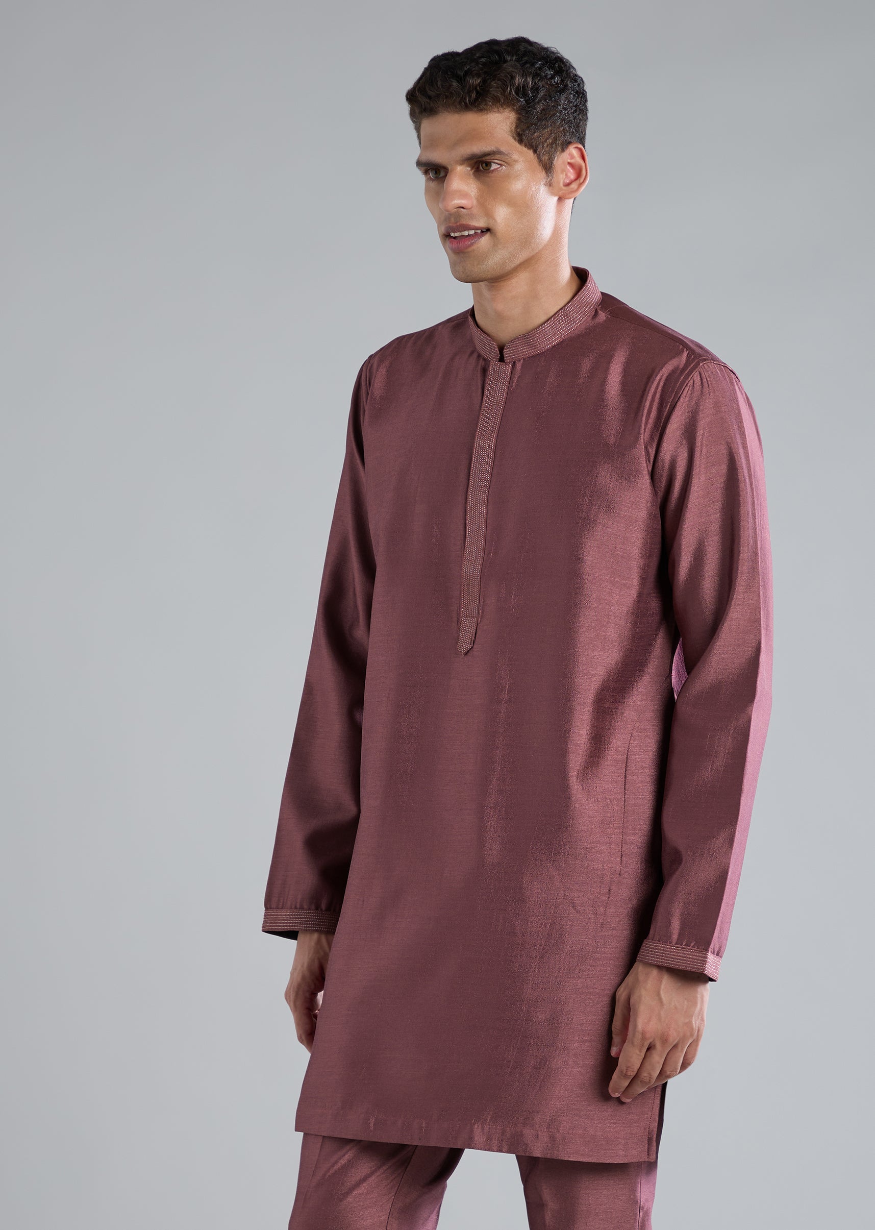 Wine Kurta Jacket Set With Thread Resham And Zari Work