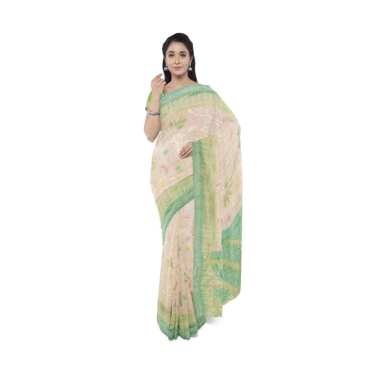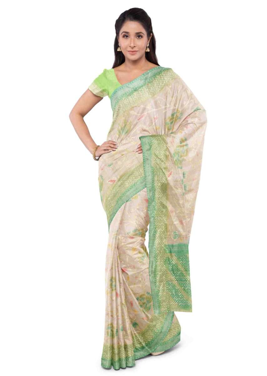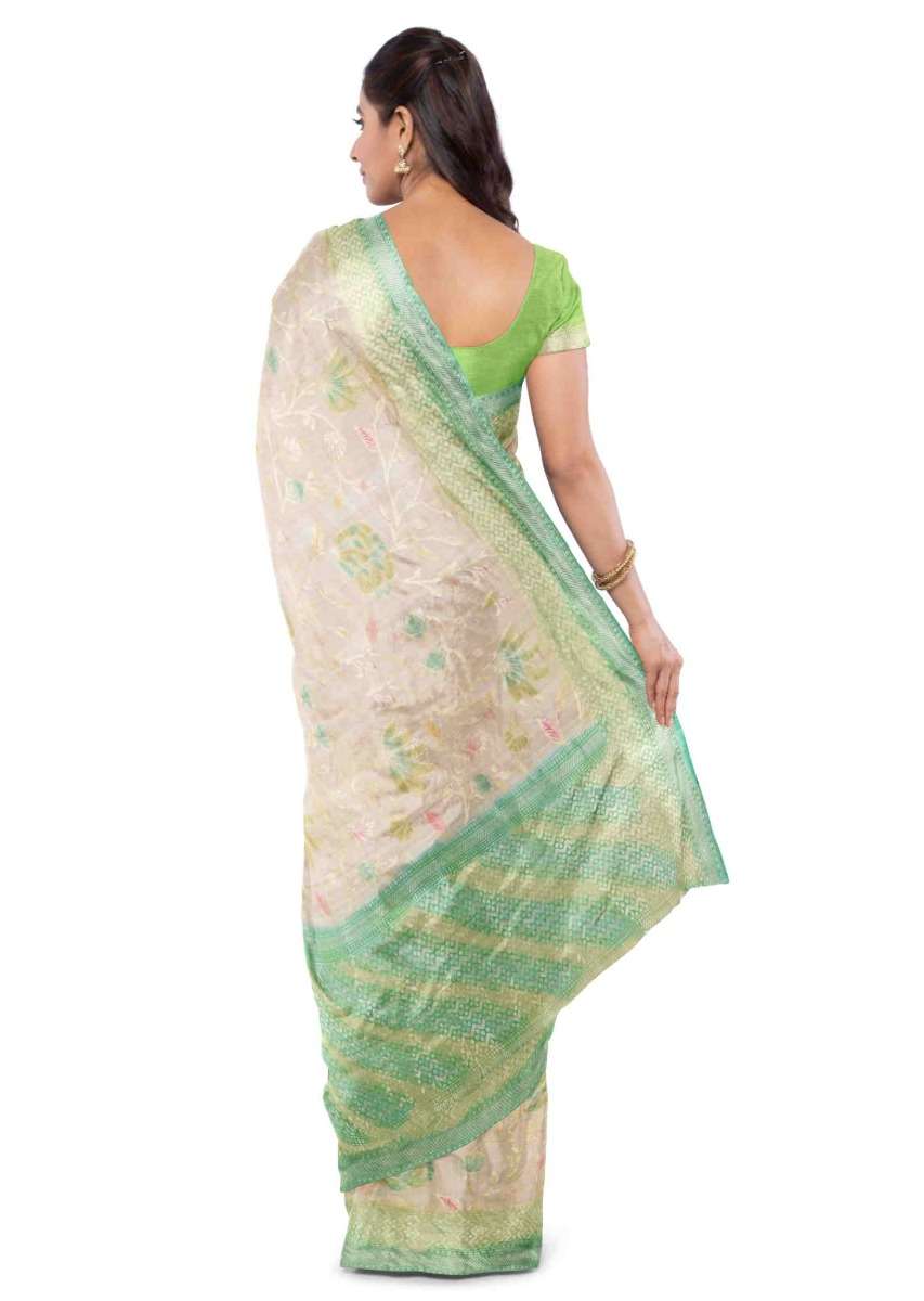 Winter White Banarasi Saree In Jute Silk With Weaved Floral Pattern Online - Kalki Fashion