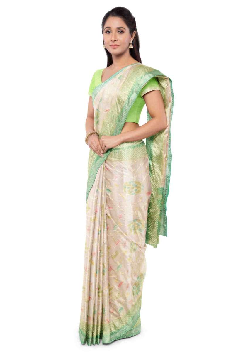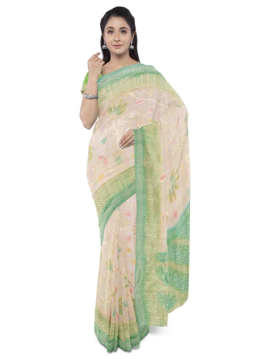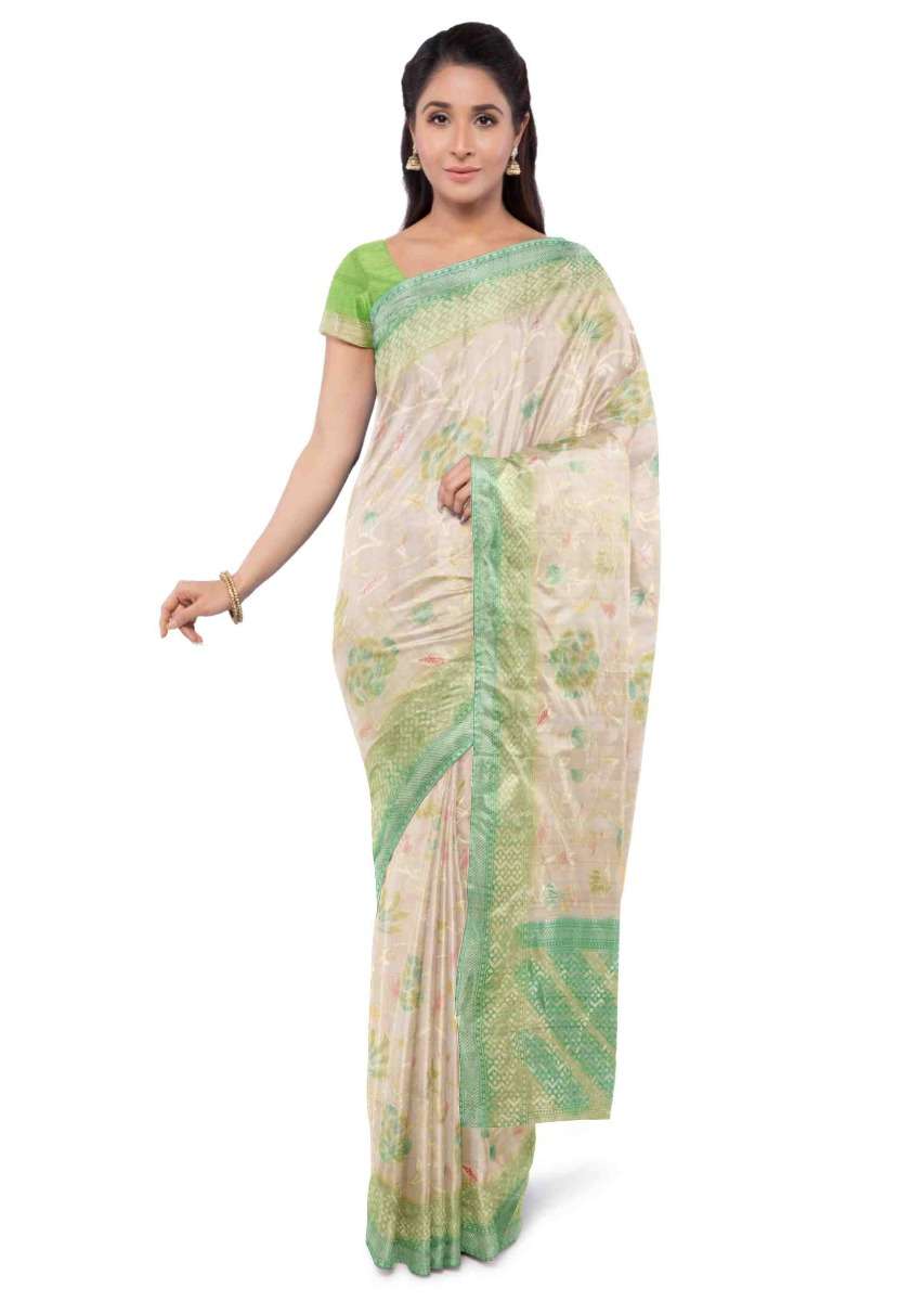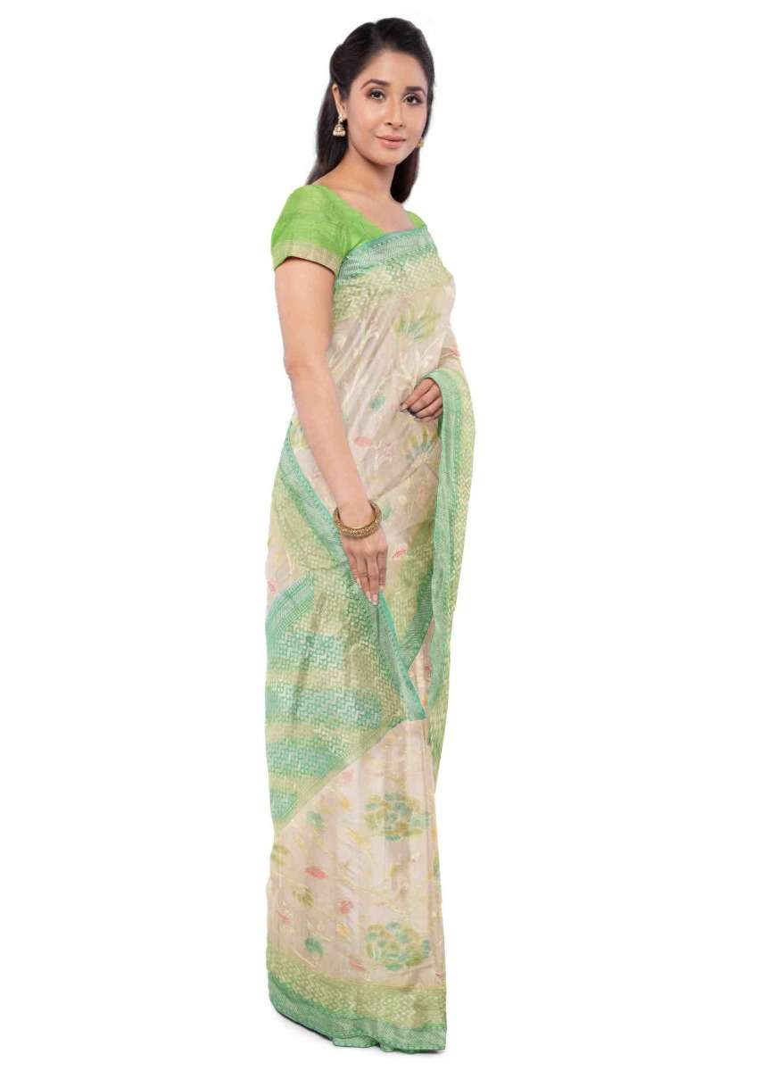 Winter White Banarasi Saree In Jute Silk With Weaved Floral Pattern Online - Kalki Fashion
