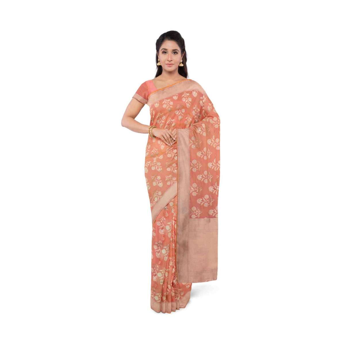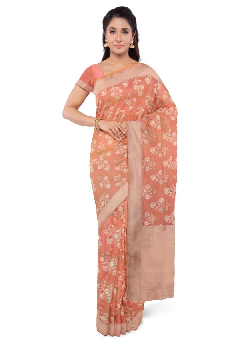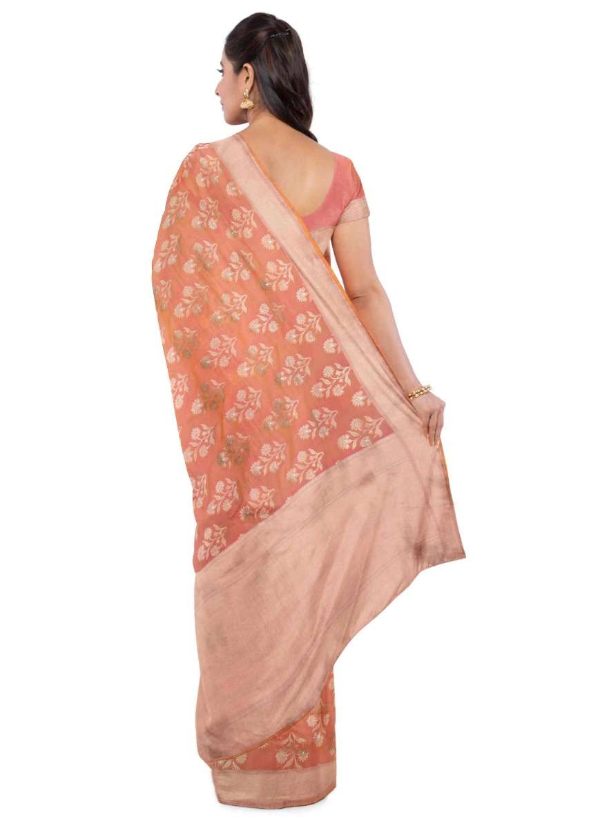 Yellow and pink two toned banarasi saree with matching blouse piece only on Kalki