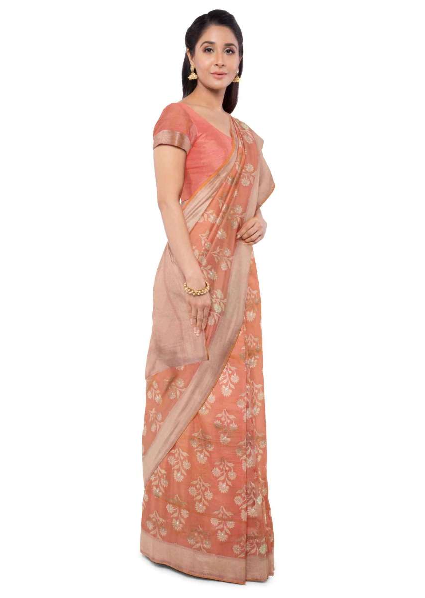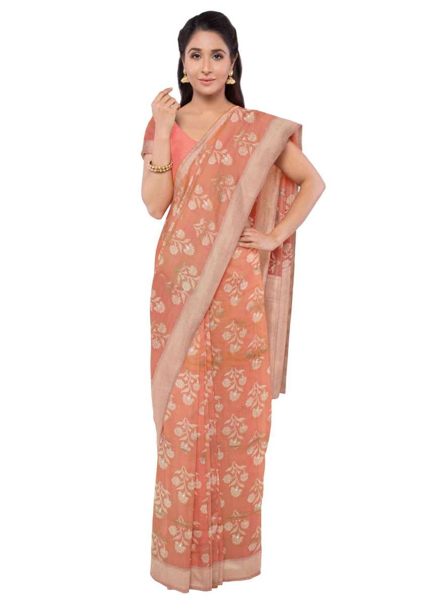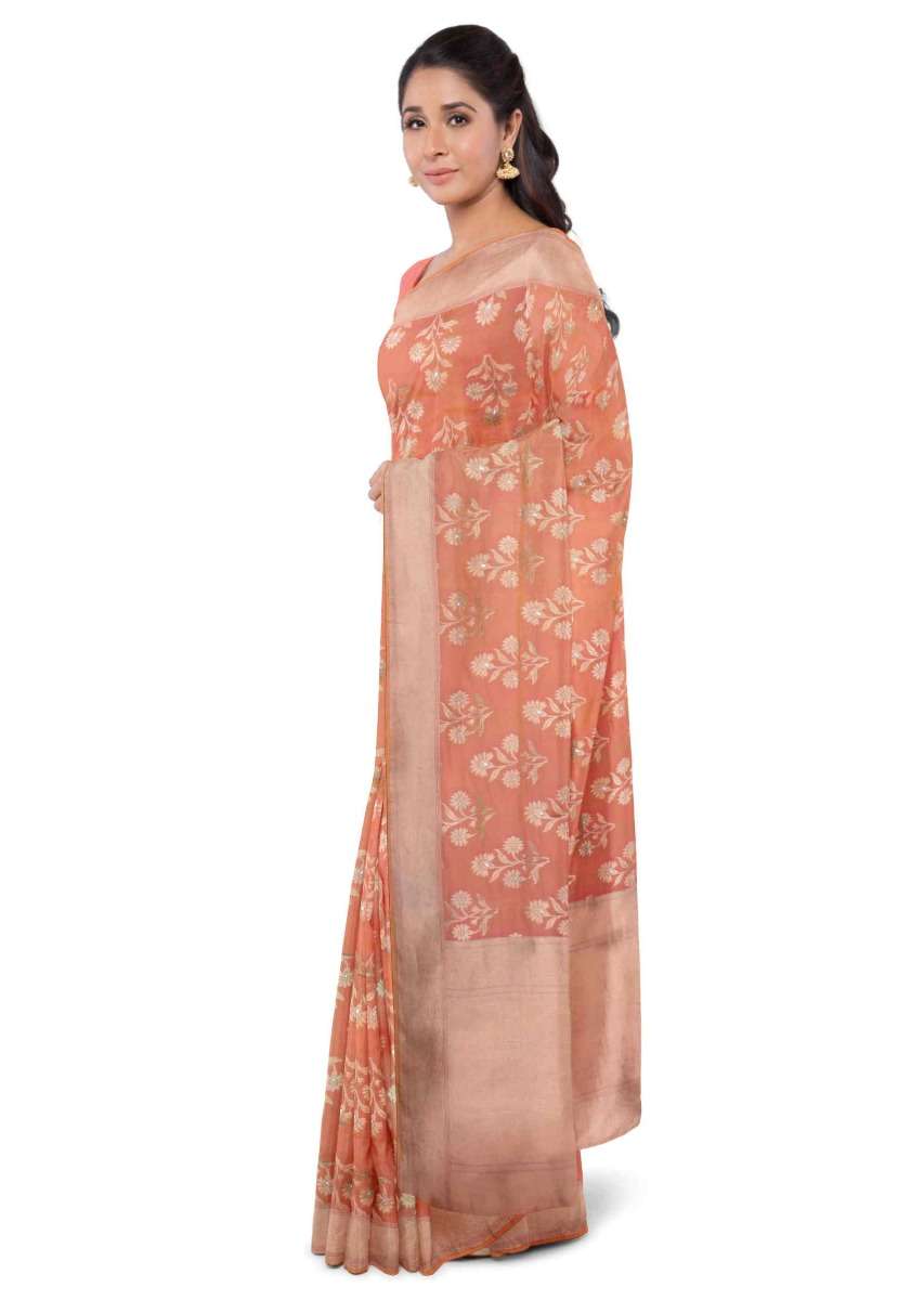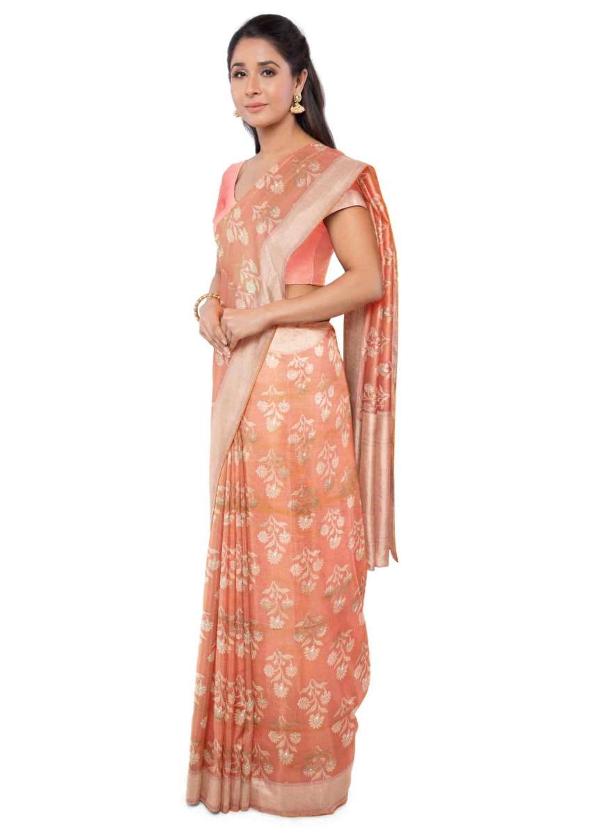 Yellow and pink two toned banarasi saree with matching blouse piece only on Kalki