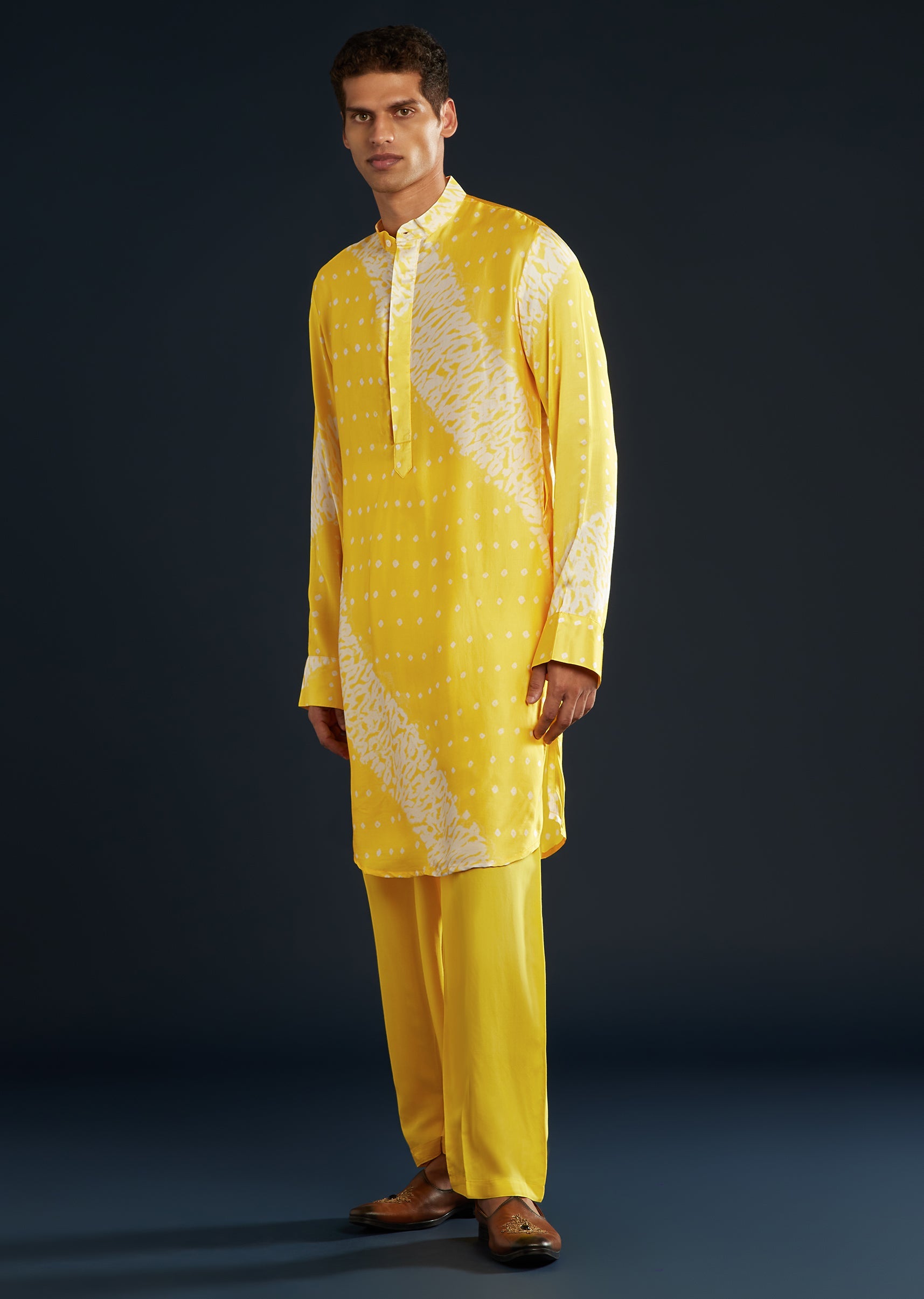 Radiating festive charm, this yellow Bandhani and Shibori print kurta set captures the essence of traditional artistry with a modern touch. The vibrant hues and fluid patterns create a lively... More Product Details