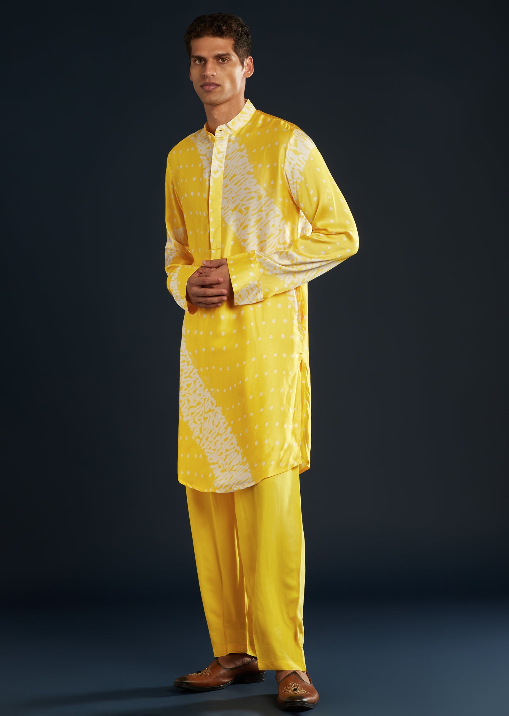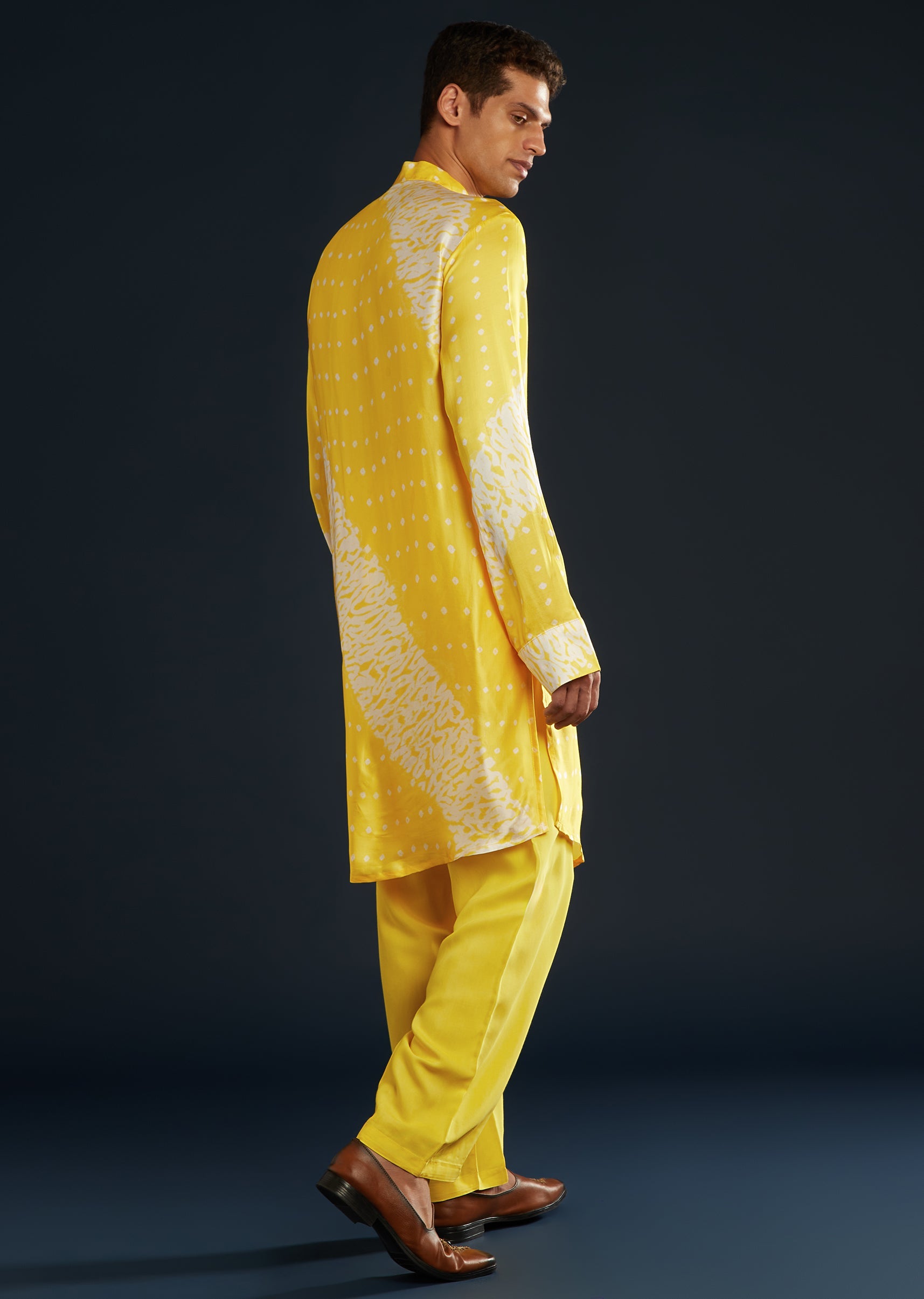 Radiating festive charm, this yellow Bandhani and Shibori print kurta set captures the essence of traditional artistry with a modern touch. The vibrant hues and fluid patterns create a lively yet refined look, while the lightweight fabric and tailored finish ensure ease from day-to-night. Perfect for haldi celebrations, festive brunches, or daytime weddings. Awarded as the Most Trusted Brand, we're delivering styles you love, just as promised.