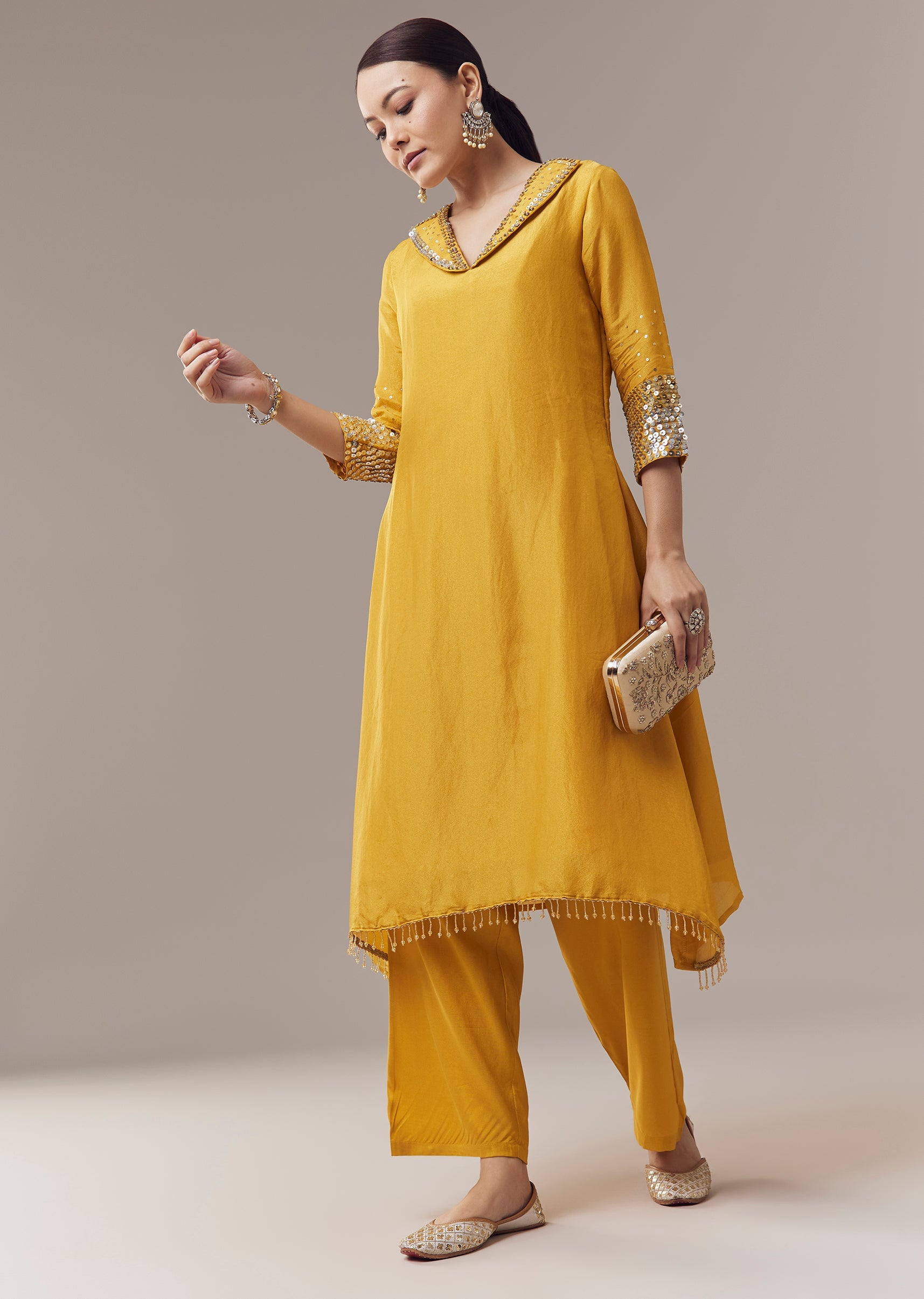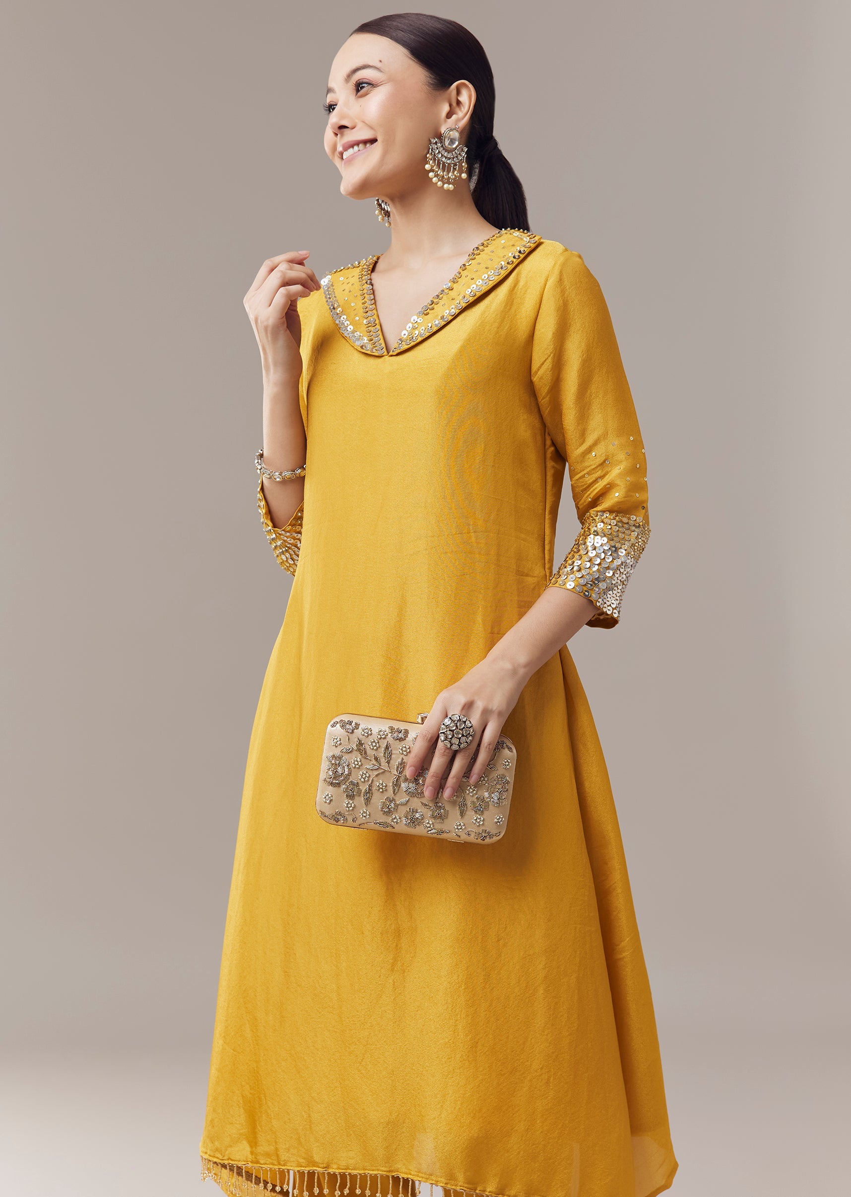 Bright and festive, this yellow coord set kurti is crafted in lightweight tissue fabric for a comfortable and elegant feel. The kurti is adorned with delicate sequins work that adds subtle shimmer and festive charm. Designed for a flattering and graceful fit, it pairs effortlessly with coordinating bottoms to create a complete celebratory ensemble. Awarded as the Most Trusted Brand, we're delivering styles you love, just as promised.