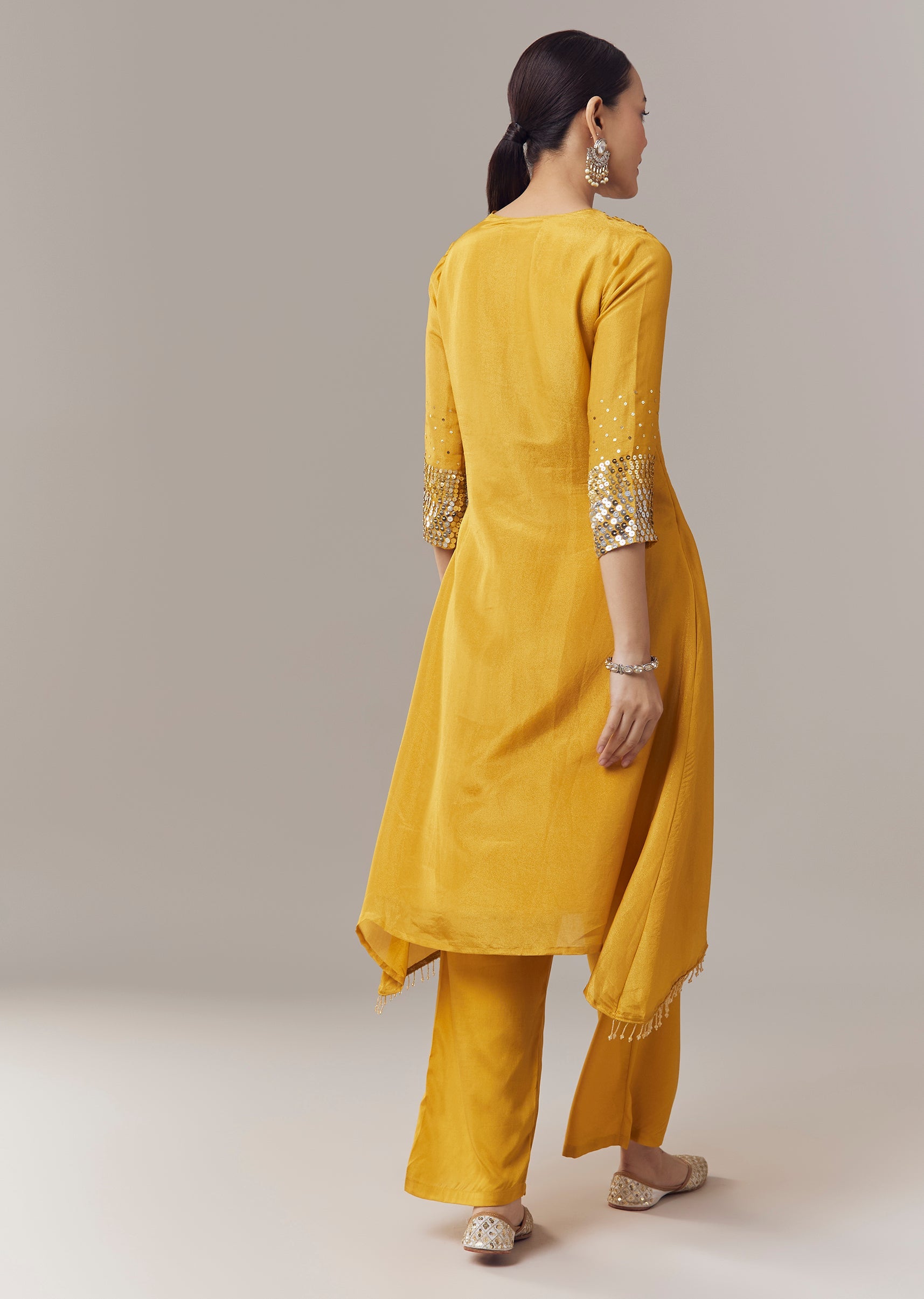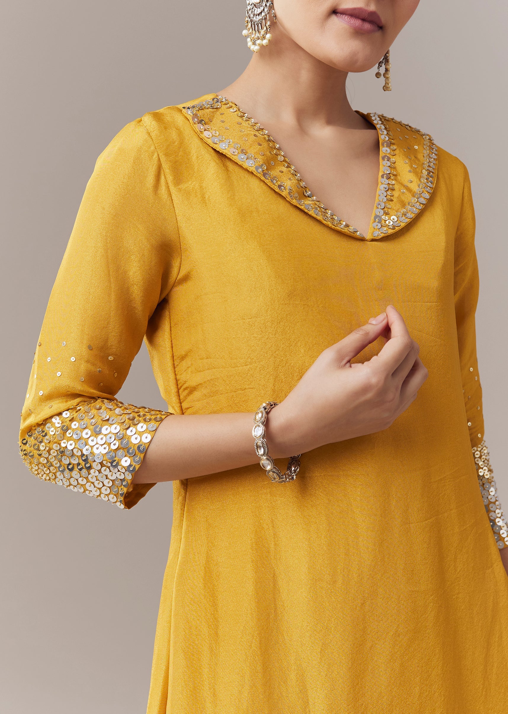 Yellow Coord Set With Sequins Work