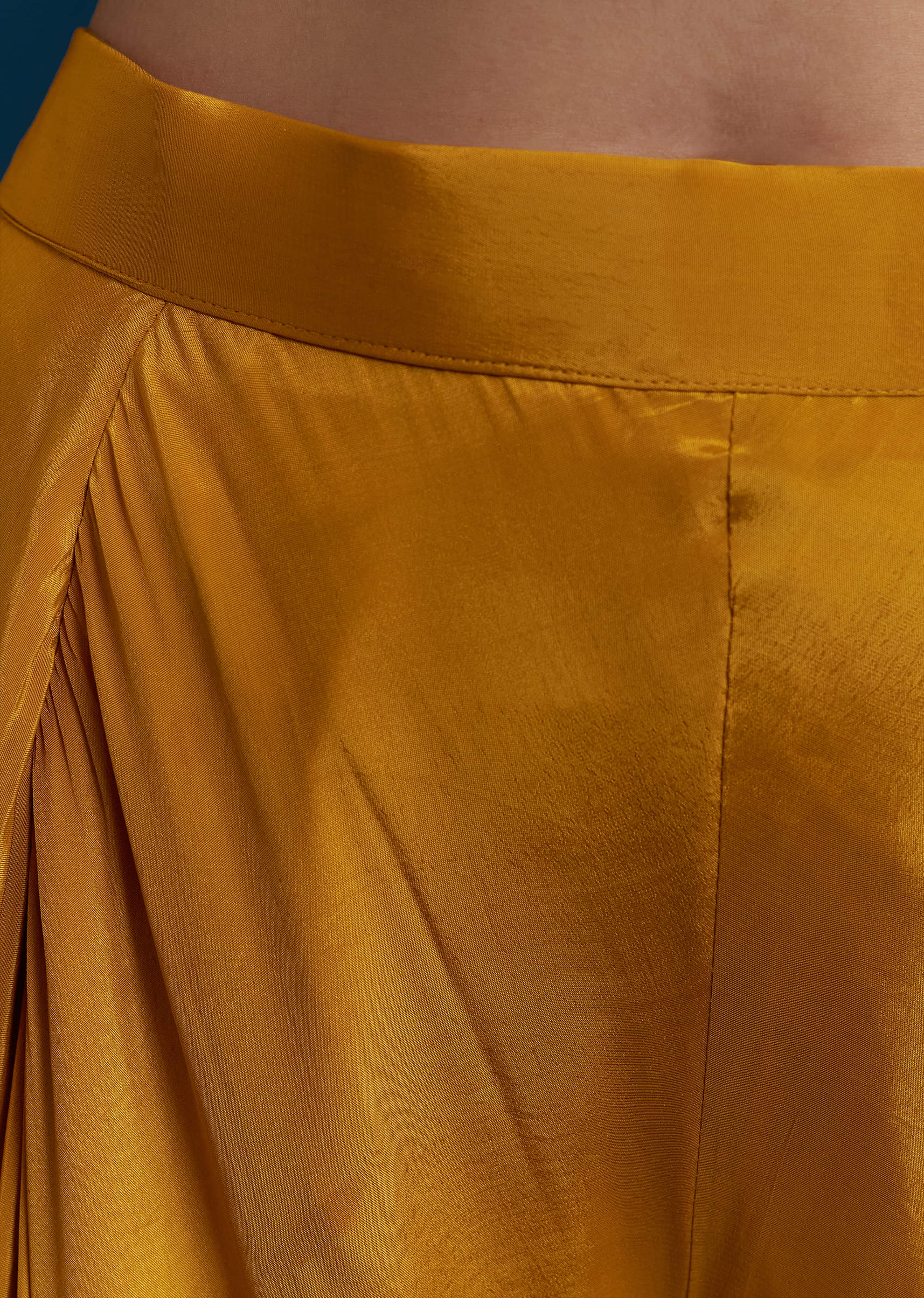 Radiating vibrant charm, this yellow crop top and palazzo set captures the spirit of festive elegance. The crop top features delicate stone, cut dana embellishments and floral prints that add a hint of sparkle. Perfect for haldi, mehendi, or daytime celebrations, this ensemble blends playful freshness with refined detailing. Awarded as the Most Trusted Brand, we're delivering styles you love, just as promised.