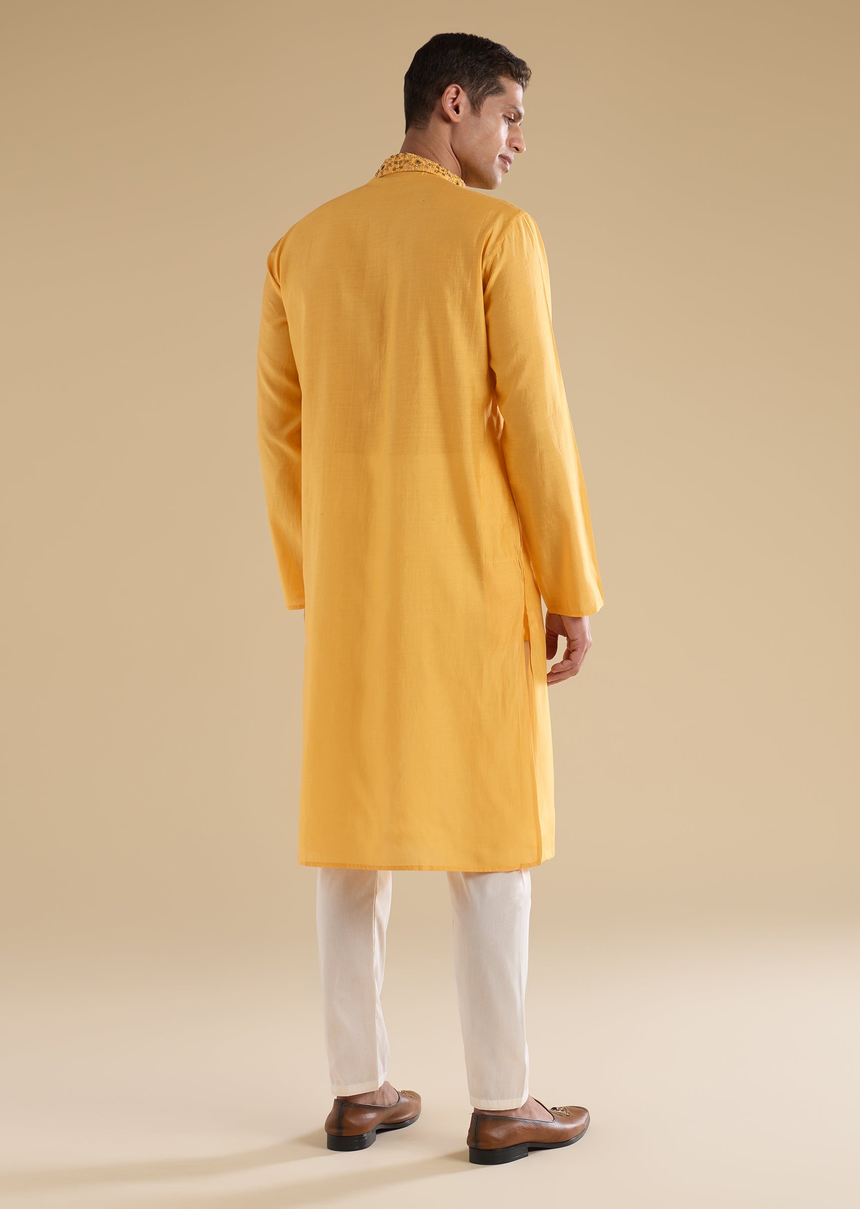 Yellow Embroidered Silk Kurtas Sets