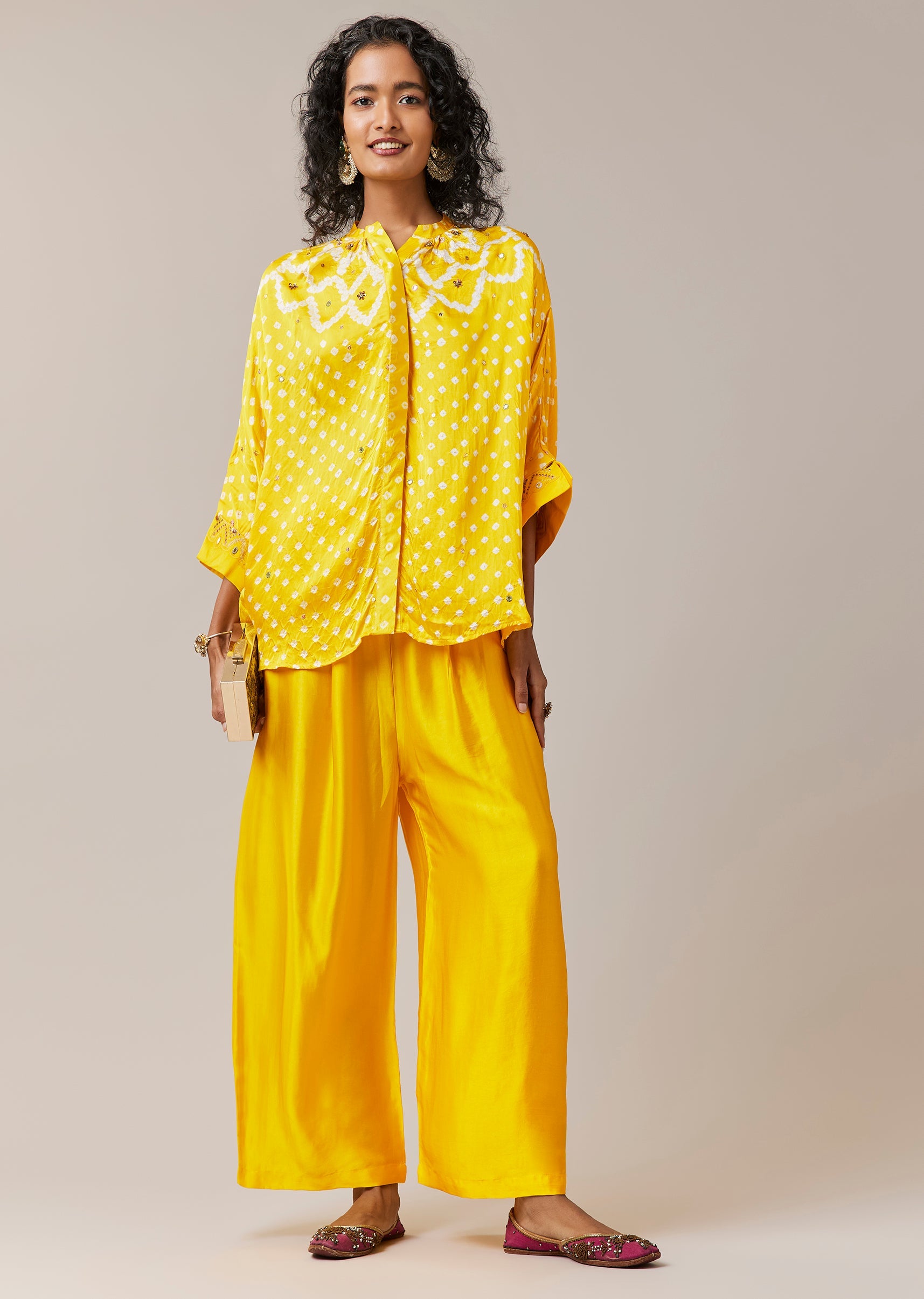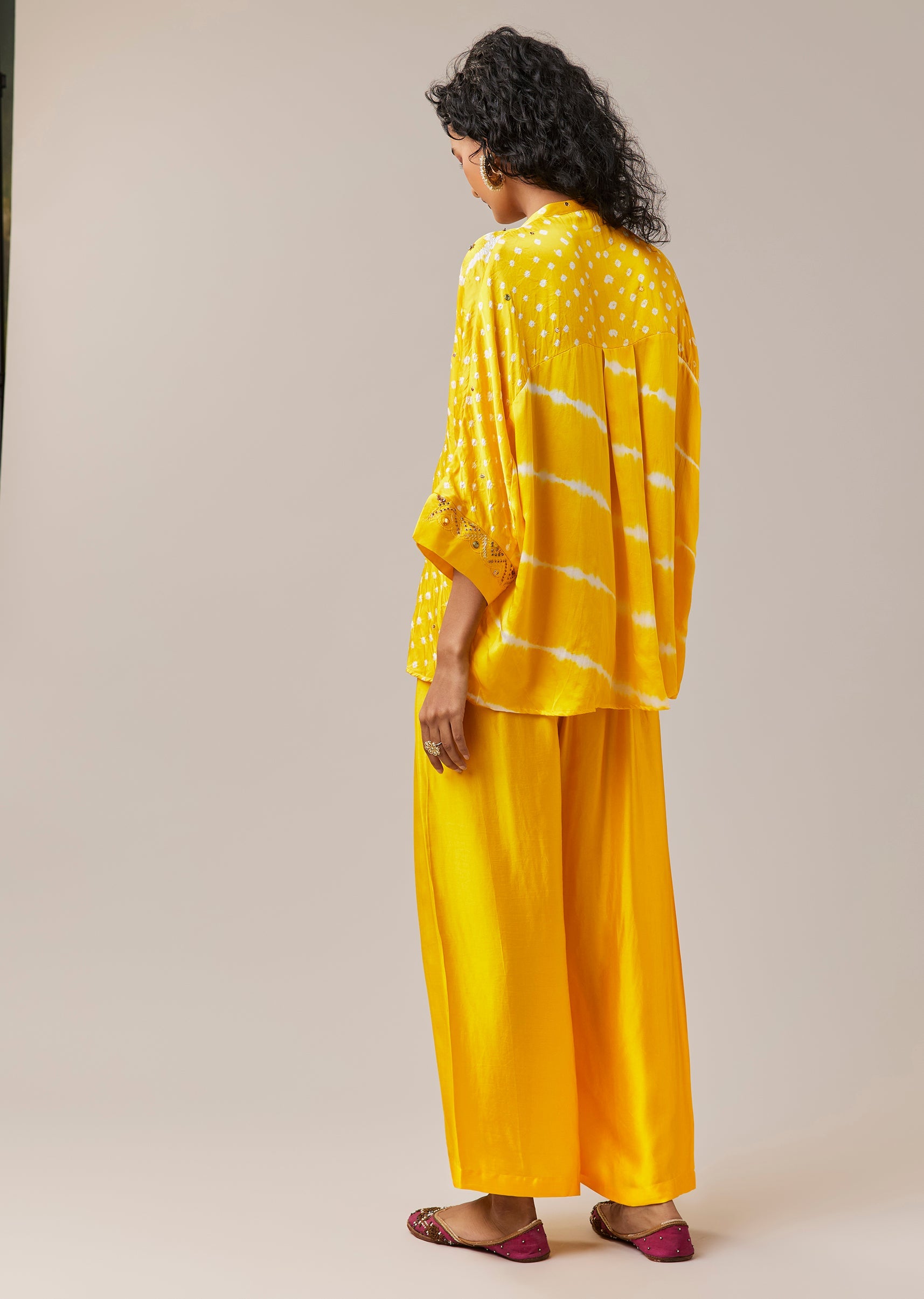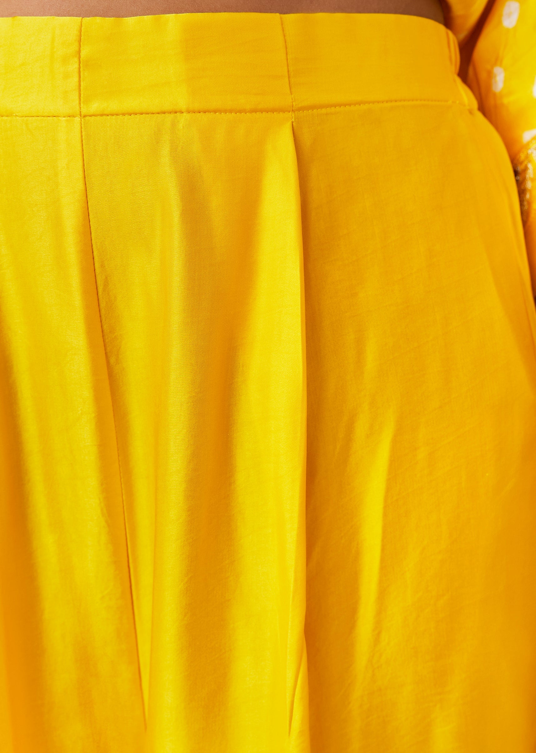 Yellow Hand Dyed Bandhani and Leheriya Pant Set with Sequin