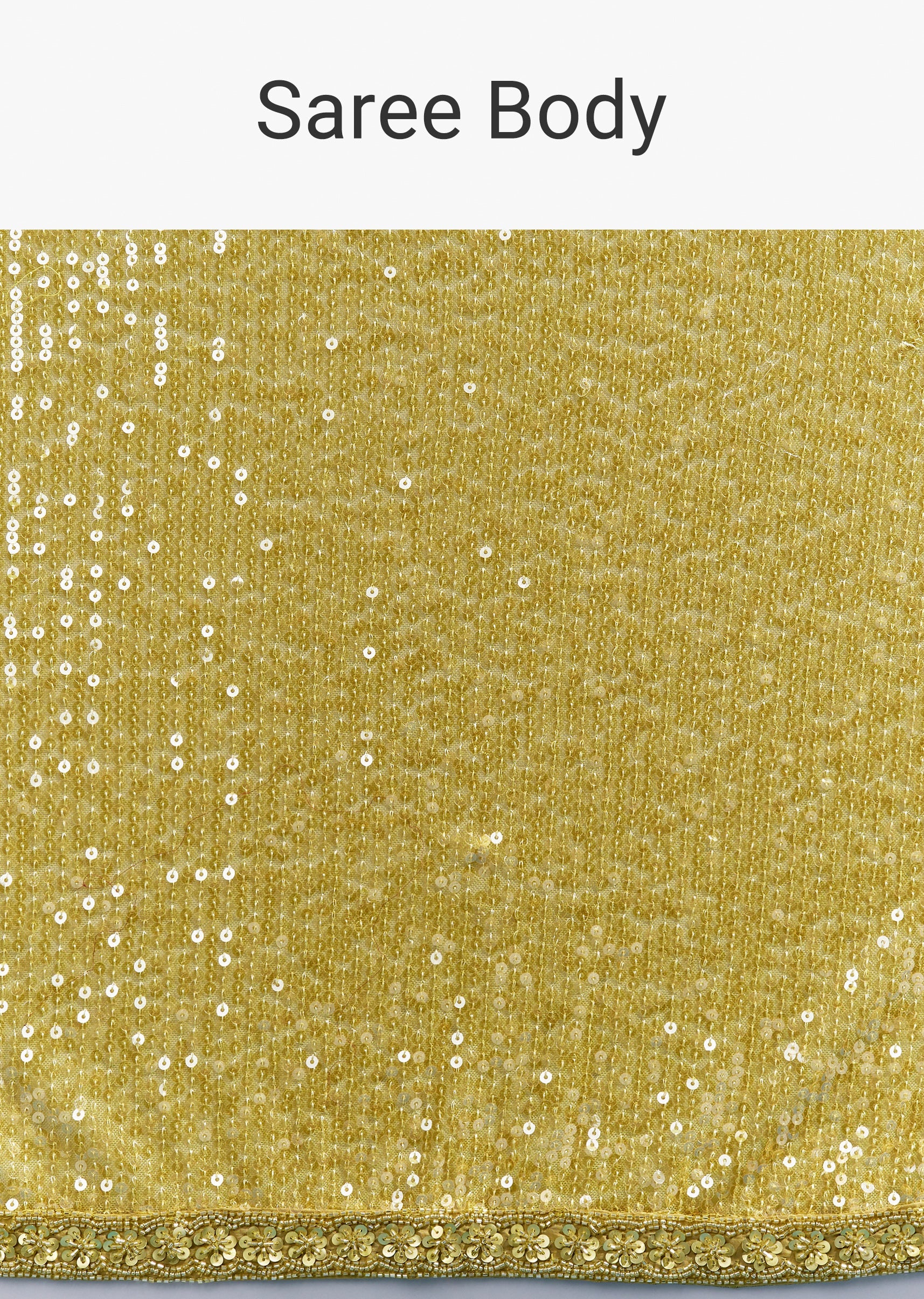 Yellow Net Sequin Saree With Linear All Over Work And Hand Embroidered Floral Border