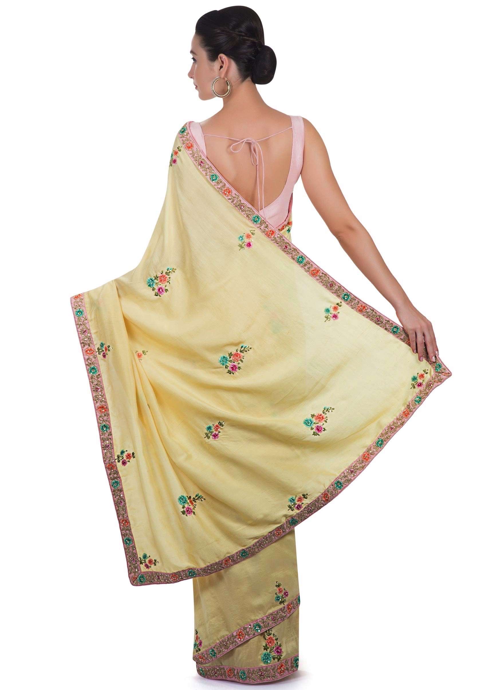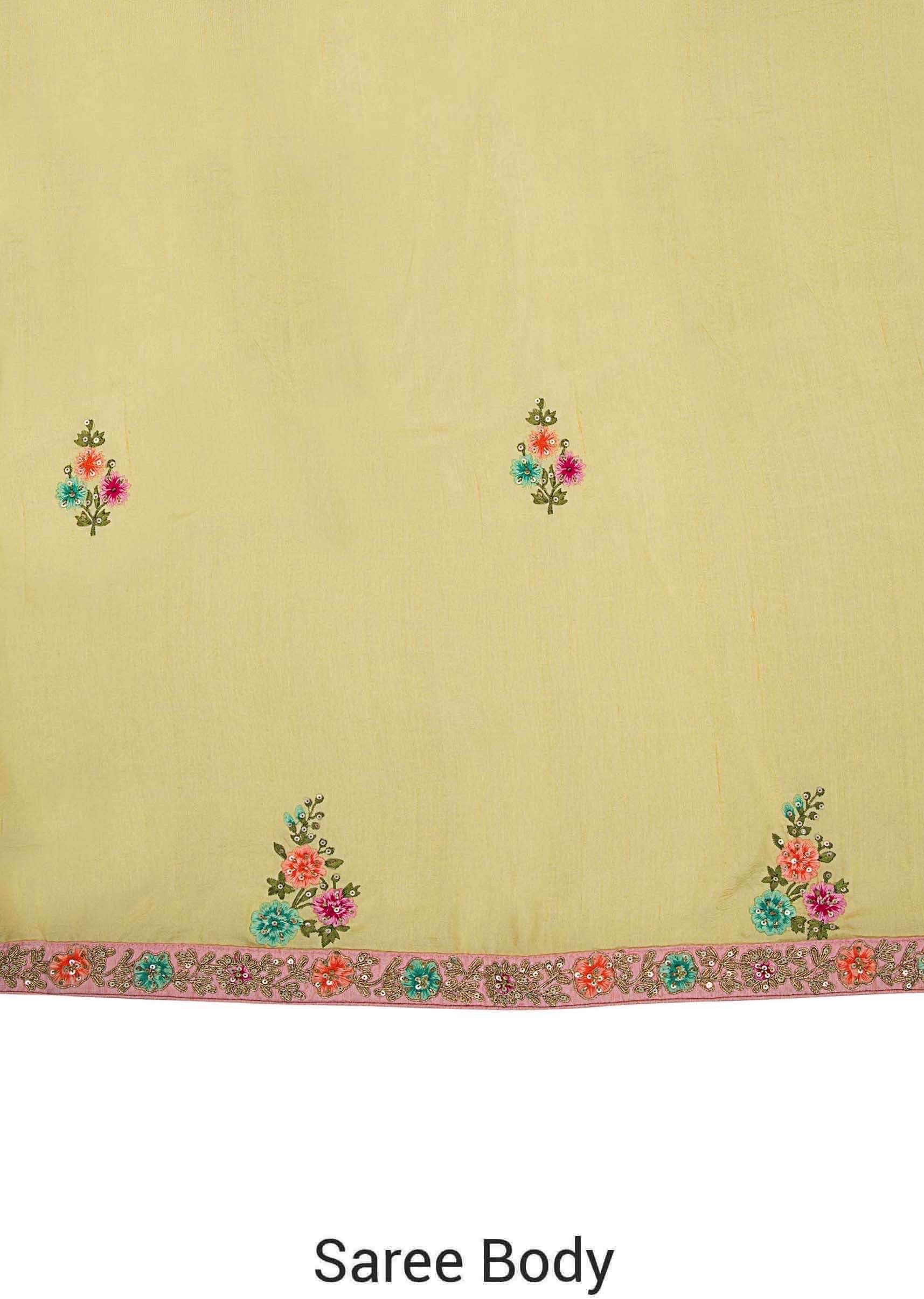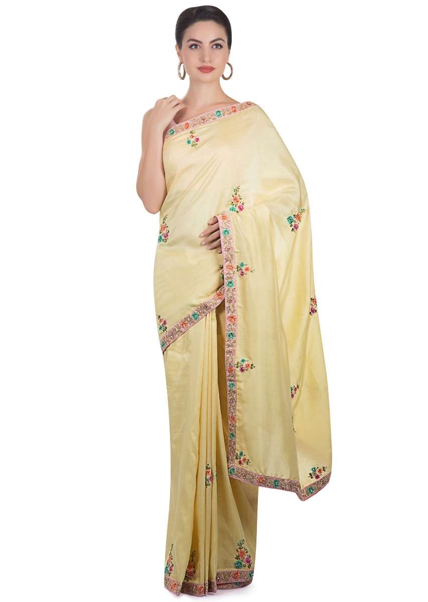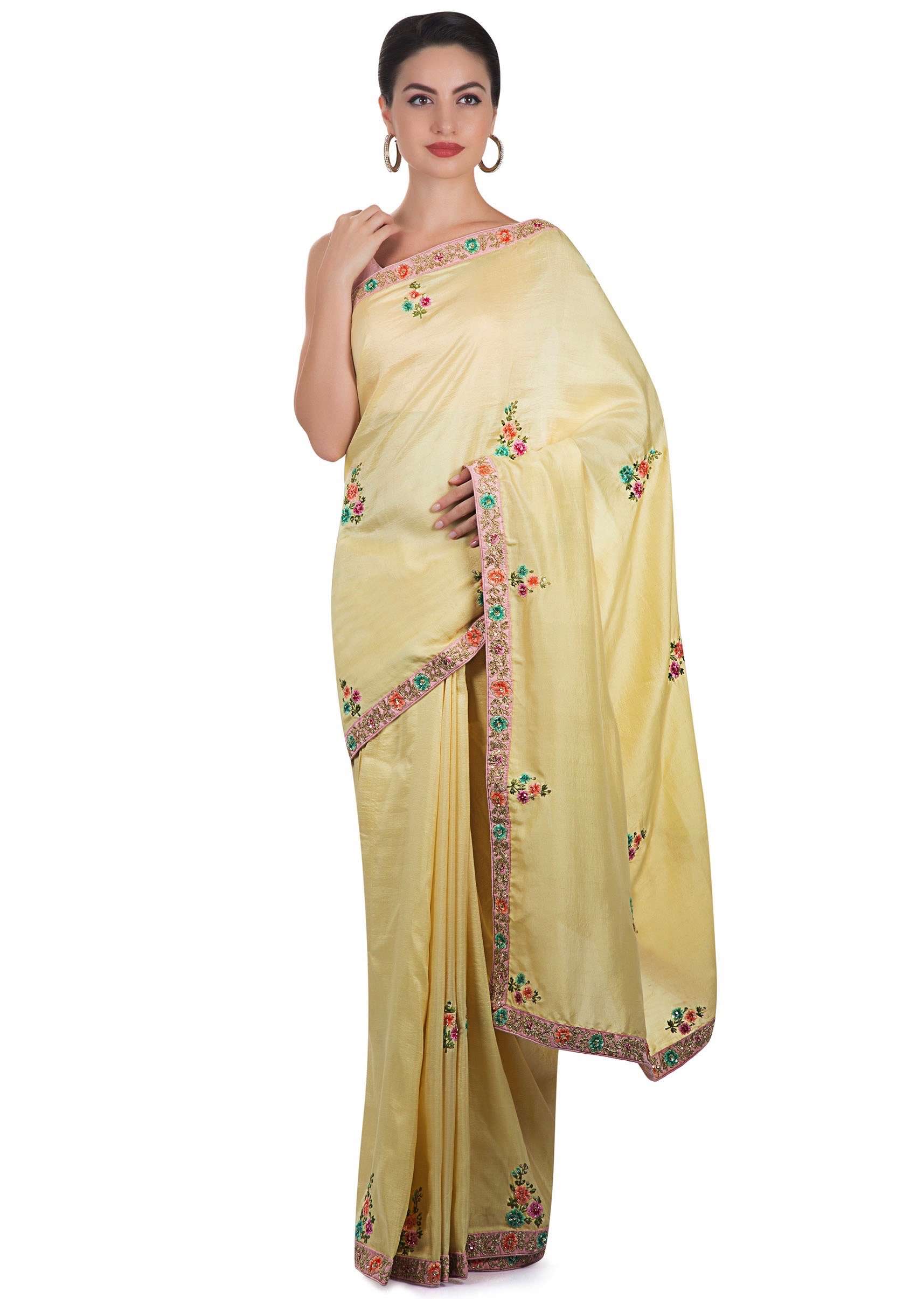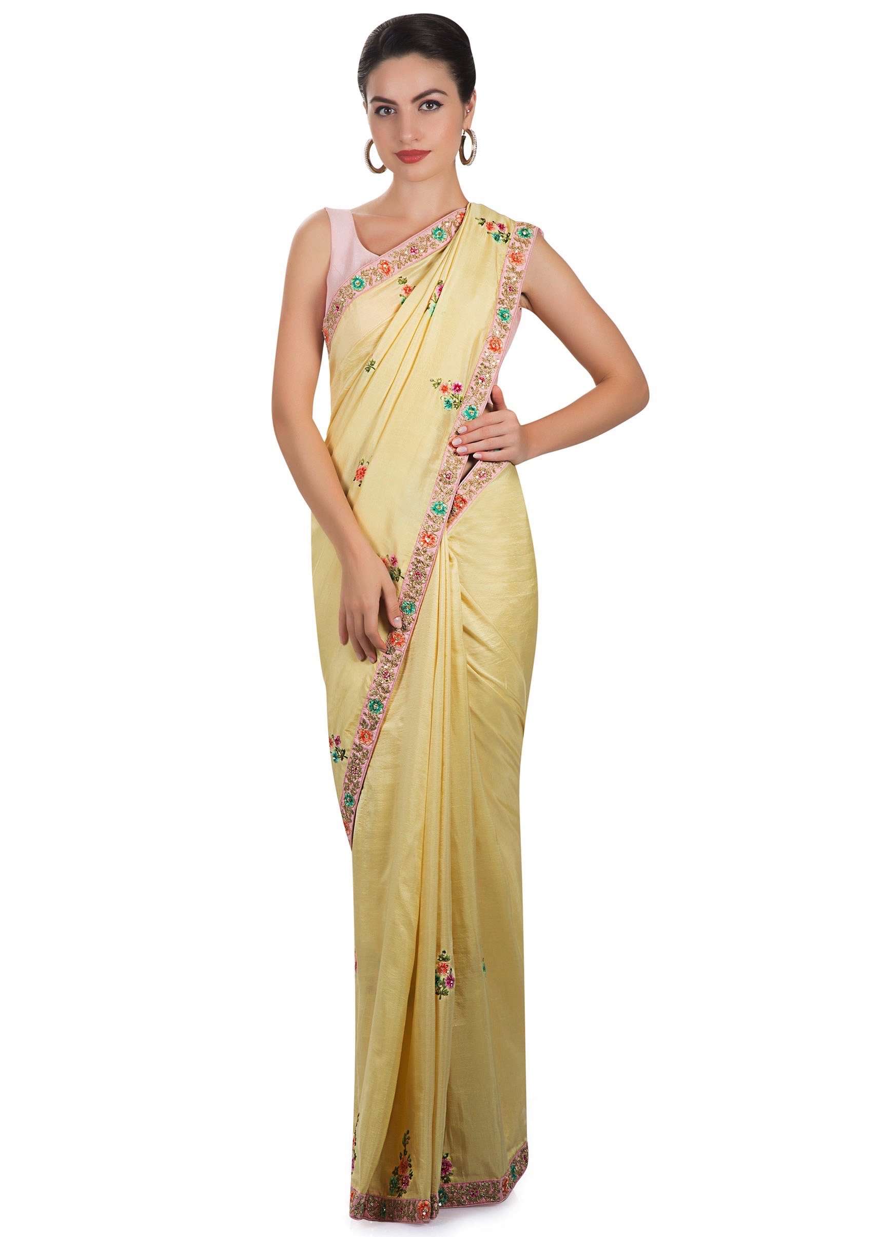 Yellow Saree In Cotton Silk Adorned With Resham, Sequin Butti And Border Online - Kalki Fashion