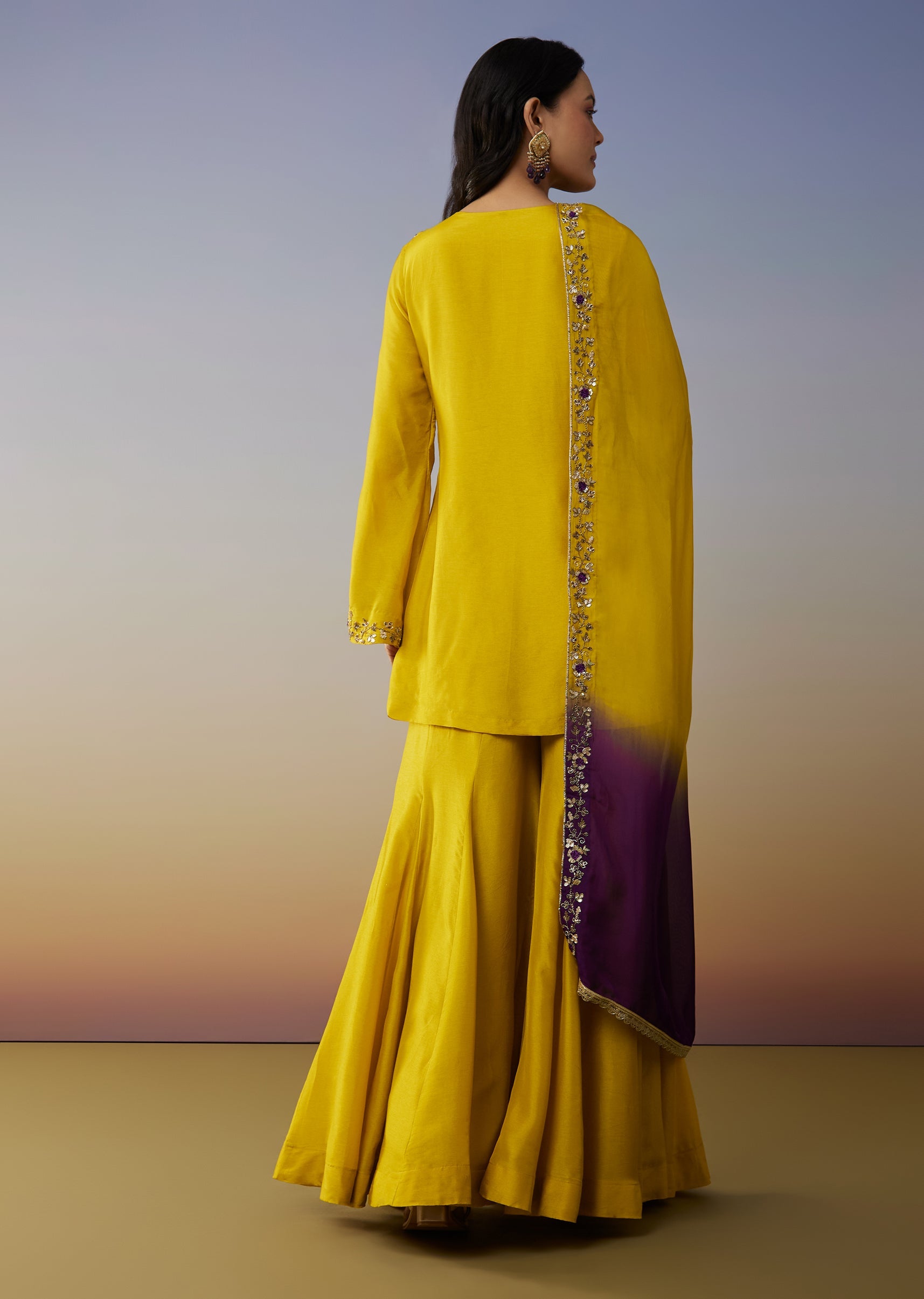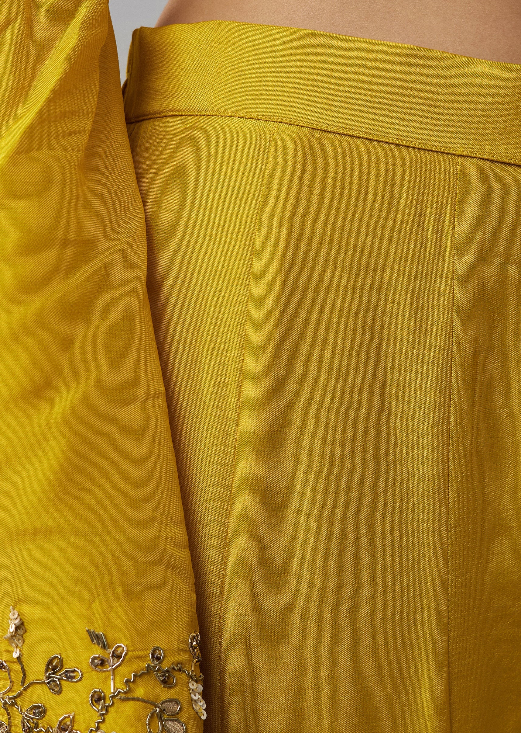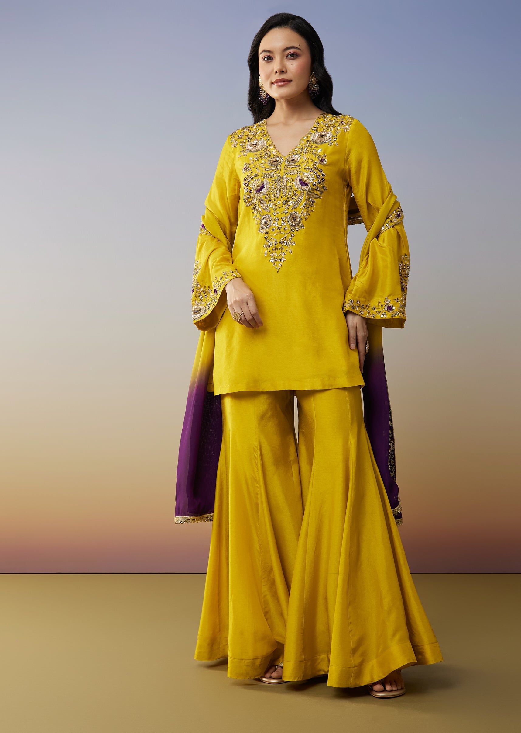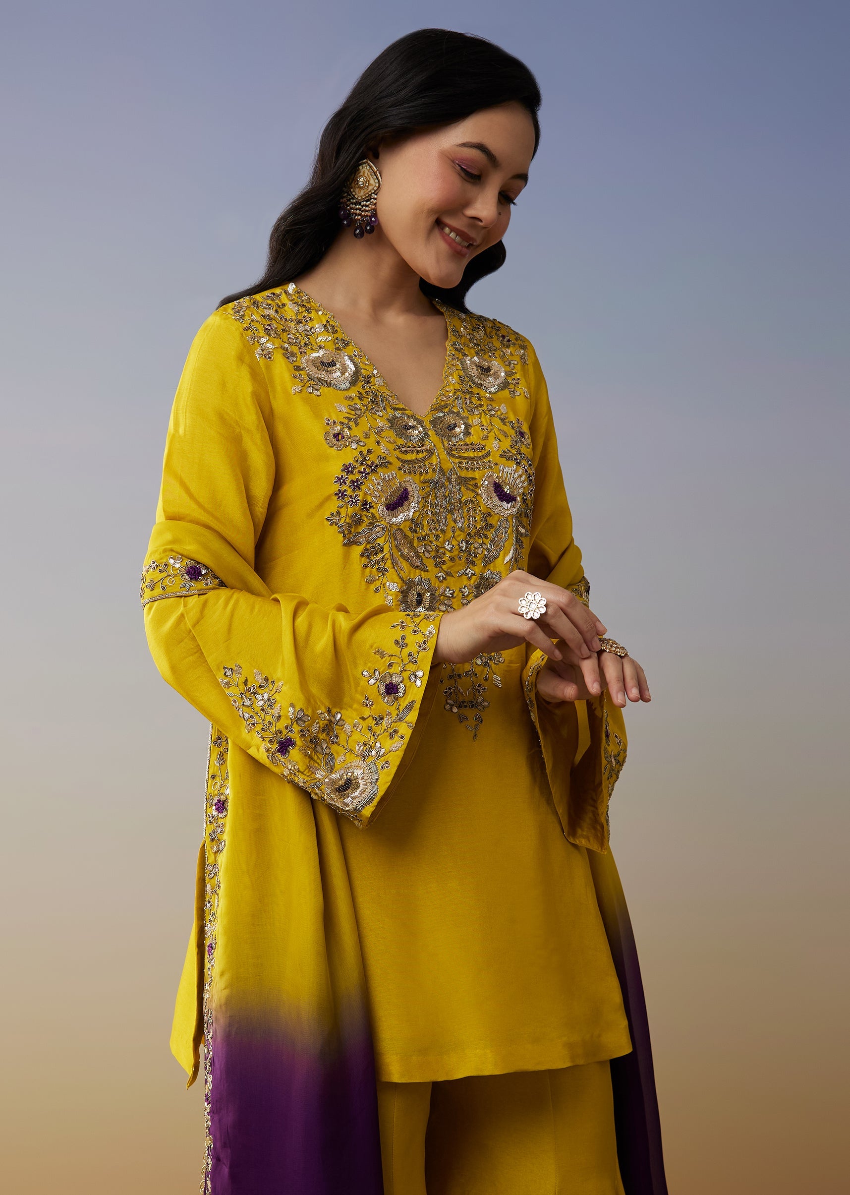 Yellow Silk Palazzo Suits with Zardosi Sequins Work