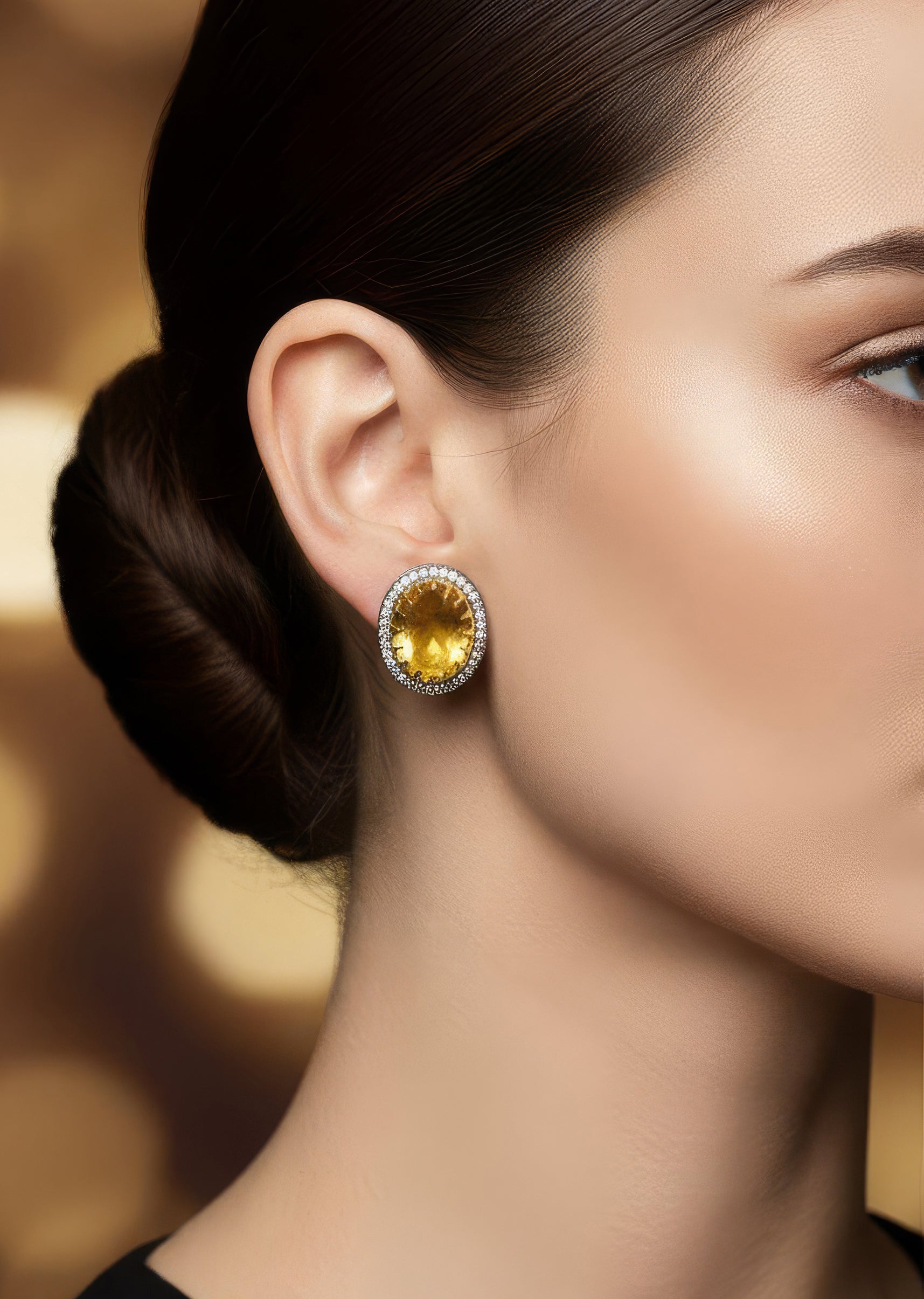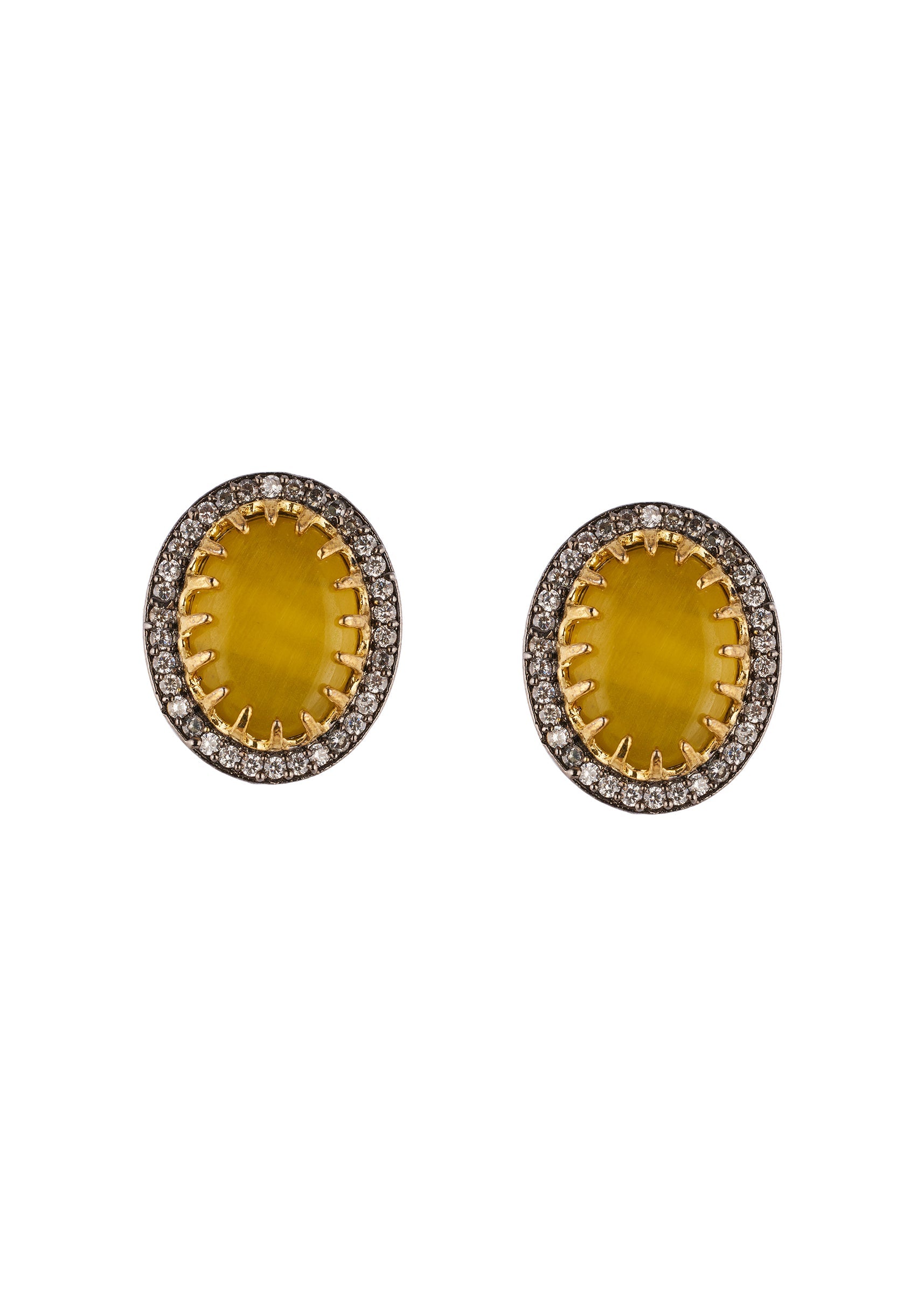 A striking pair of studs crafted in yellow and black tones highlighted with delicate diamond inspired surrounding work. The bold colour contrast and refined detailing make them an elegant choice... More Product Details