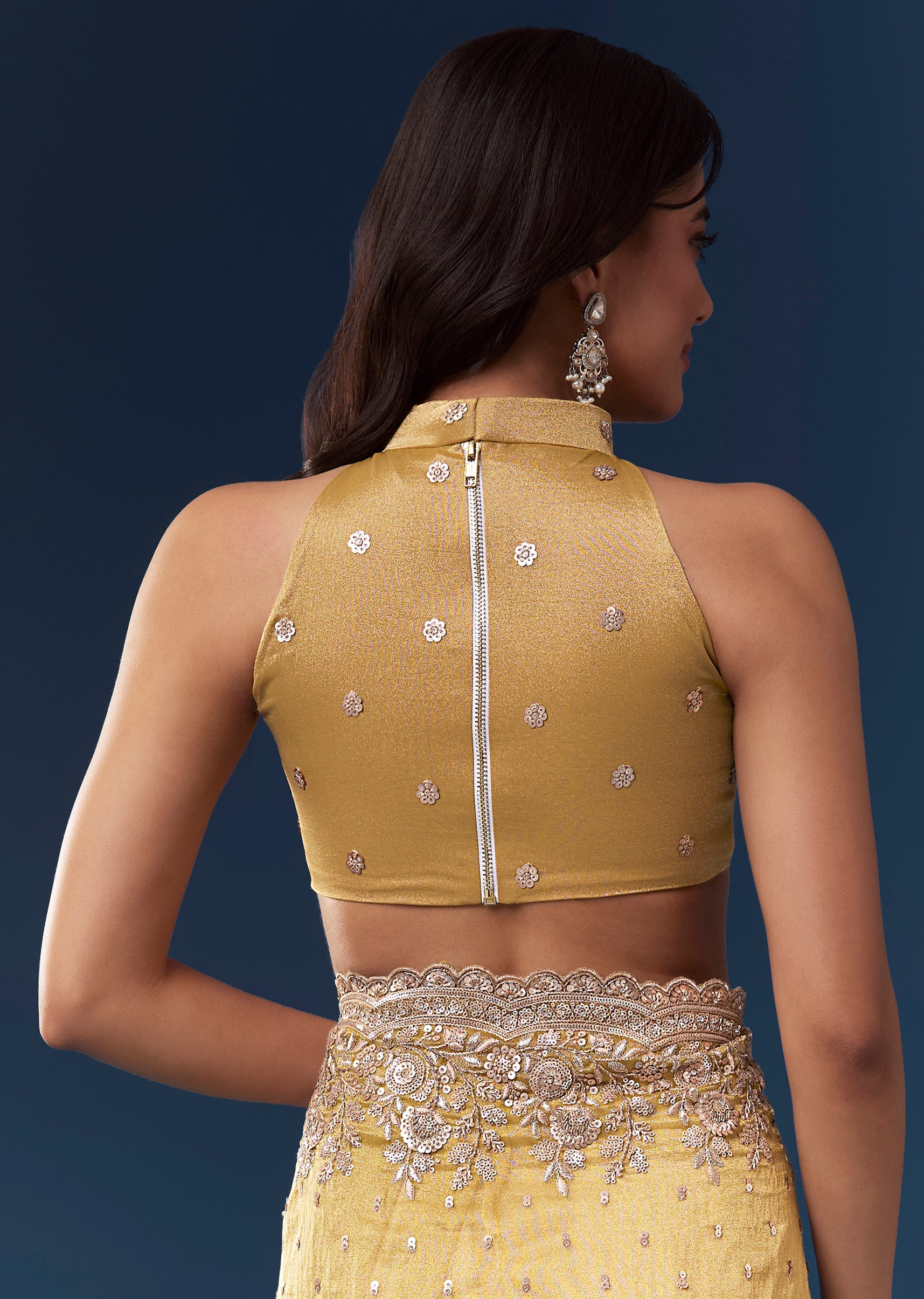 Yellow Tissue Saree With Scallop Heavy Embroidered Border And Sequin Work